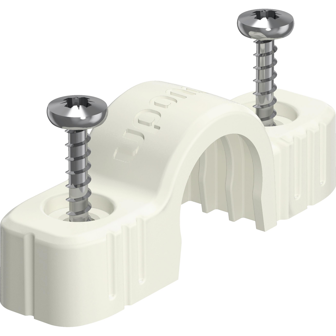 Enkelklammer i Uponor TECK-serien for sikker feste av 28 mm rør. Gir stabil rørføring og rask montasje på vegg, tak eller bjelke.