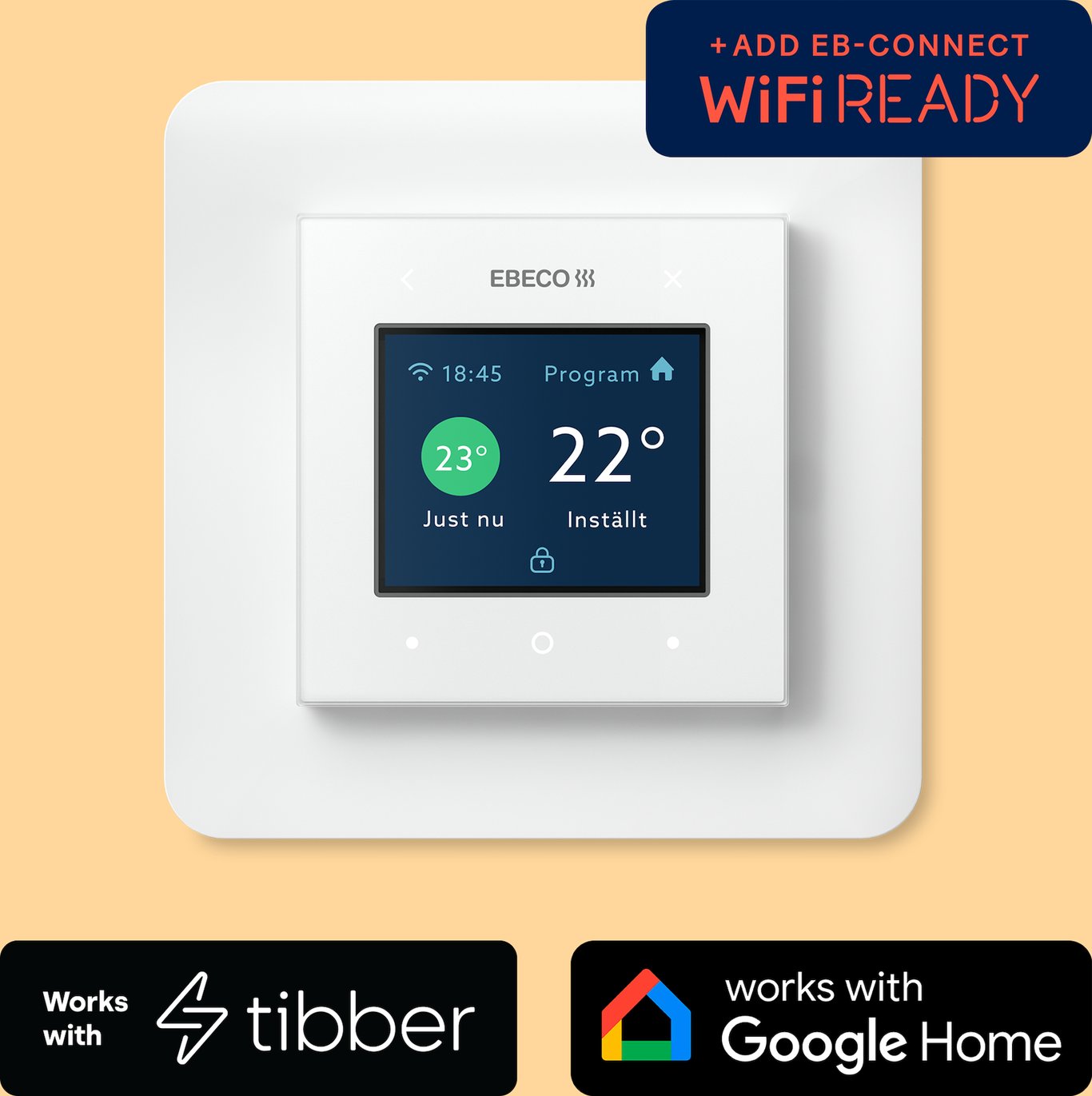 For et smartere strømforbruk er det nå mulig som Tibber-kunde å koble WiFi Ready termostat EB-Therm 500 og tilbehøret EB-Connect WiFi til strømselskapet, så du kan bruke strømmen når den er billigst.