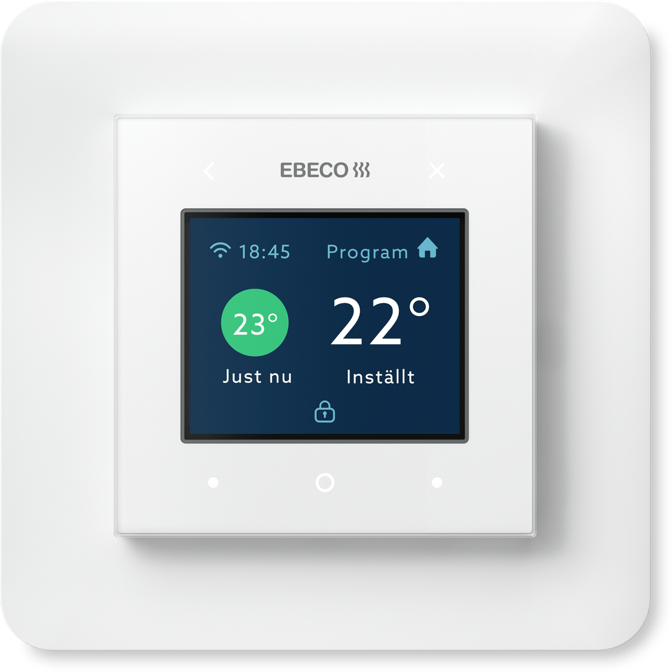 Denne gulvtermostaten fra Ebeco har flere justerbare energispareprogrammer, samt fargedisplay med enkel og tydelig navigering.