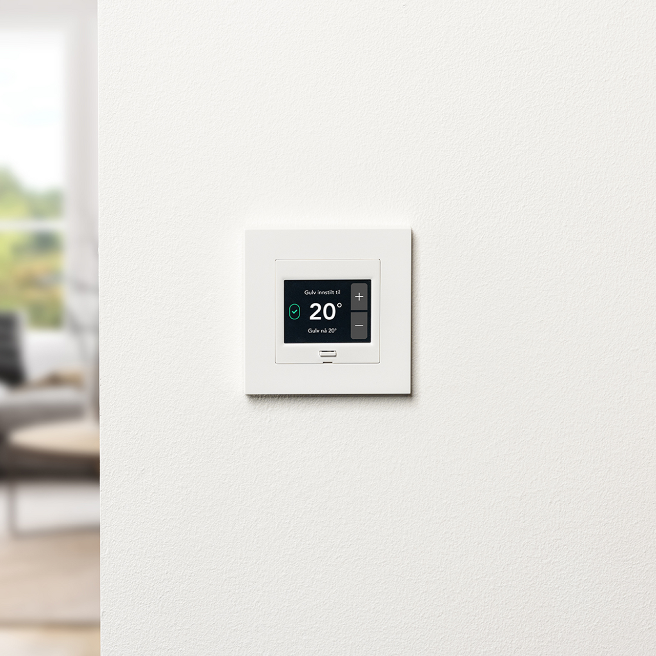 Dette er en smart termostat for elektrisk gulvvarme med skjerm og innebygd styring.