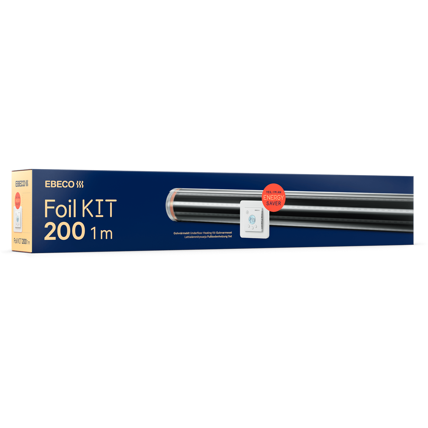 Ebeco Foil Kit inneholder folie, termostat, tape, koblingsklemmer, kabel (RTK) og spiralslange. Det eneste som kreves i tillegg, er Ebisol isolasjonsplater samt presstangen. Kitet finnes i seks ulike størrelser, hvorav ett er et kompletteringskit uten termostat.