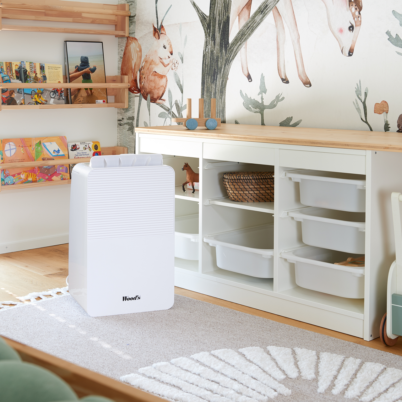 Denne avfukteren fra Wood's er utviklet for å avfukte baderom og mindre rom. Den praktiske størrelsen og den enkle transporten gjør den perfekt for andre små, fuktige rom som campingvogner, bobiler og båter.