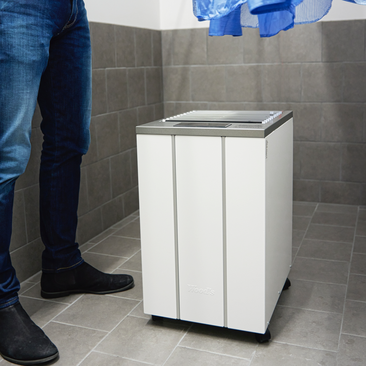 Denne avfukteren fra Wood's fungerer som en smart tørketrommel og tørkeromsavfukter spesielt tilpasset vaskerommet.