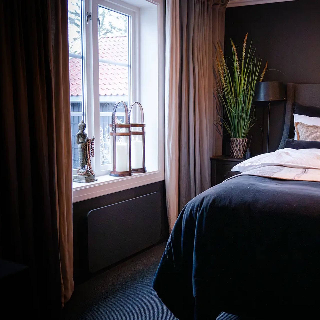 Denne panelovnen fra Beha i samarbeid med Halvor Bakke har en lett strukturert front som kan males, som gjør at den enkelt kan tilpasses til enhver innredning. Den kan også brukes umalt og rå, og den kan styres enten manuelt eller via app.