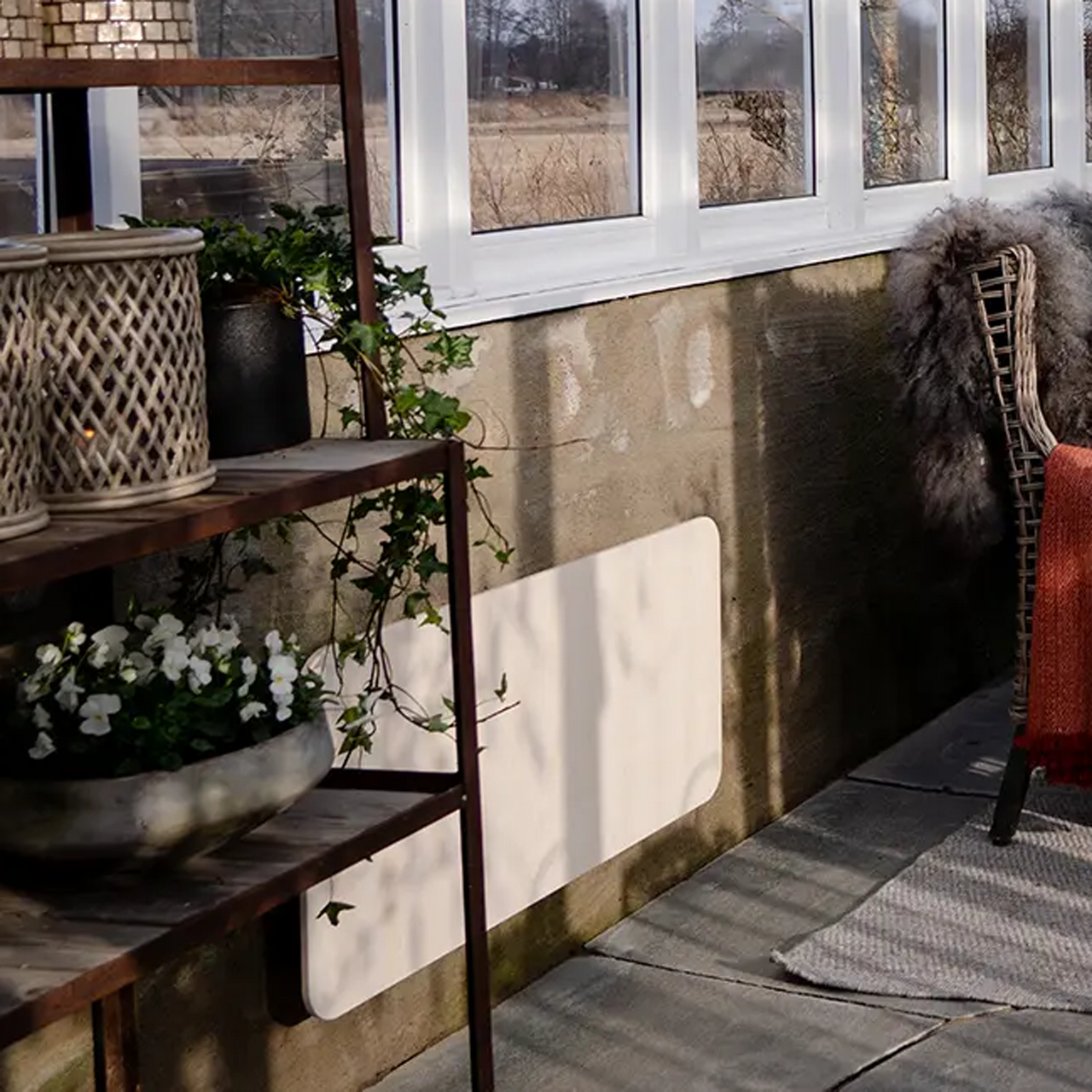 Denne panelovnen fra Beha i samarbeid med Halvor Bakke har en lett strukturert front som kan males, som gjør at den enkelt kan tilpasses til enhver innredning. Den kan også brukes umalt og rå, og den kan styres enten manuelt eller via app.
