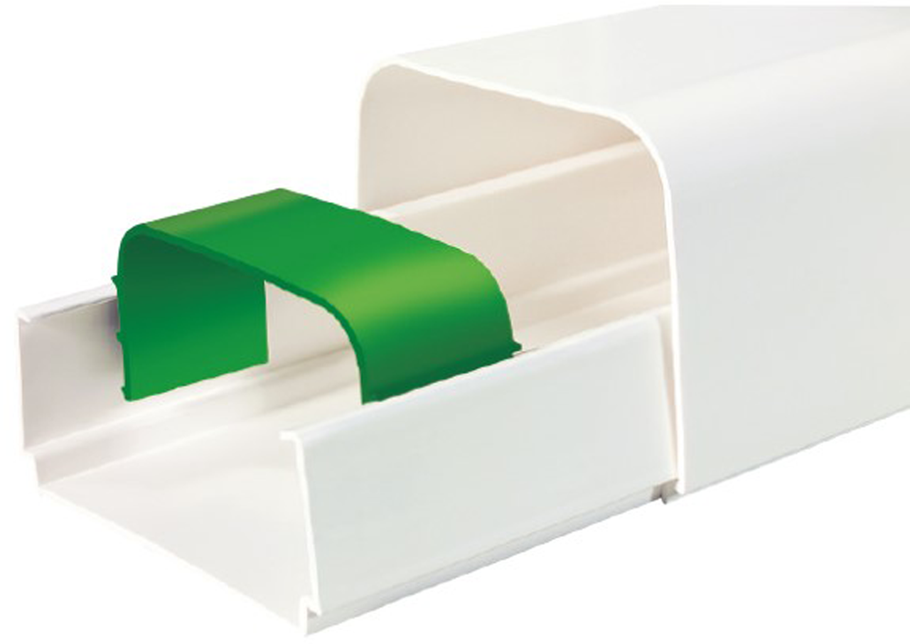 Praktisk klammer til sort varmepumpe kanal for å holde rør og kabel på plass før en setter på lokk