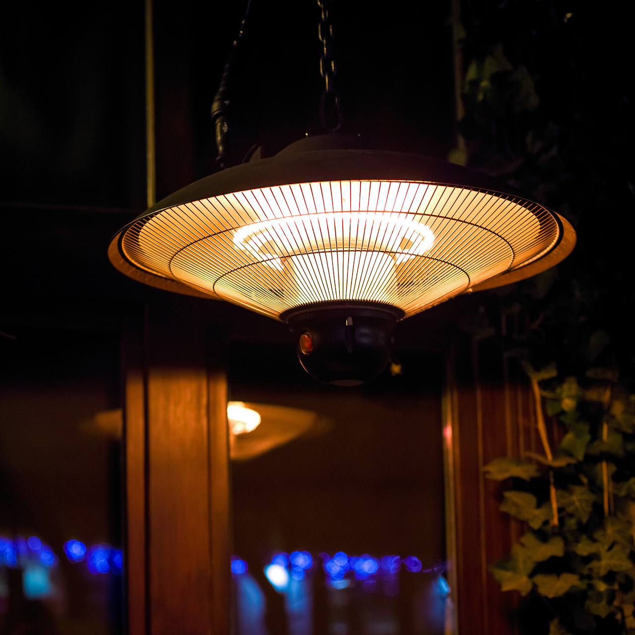 Denne takhengte terrassevarmeren fra Outfit gir en god og behagelig varme på de kjøligere sommerdagene og kveldene.