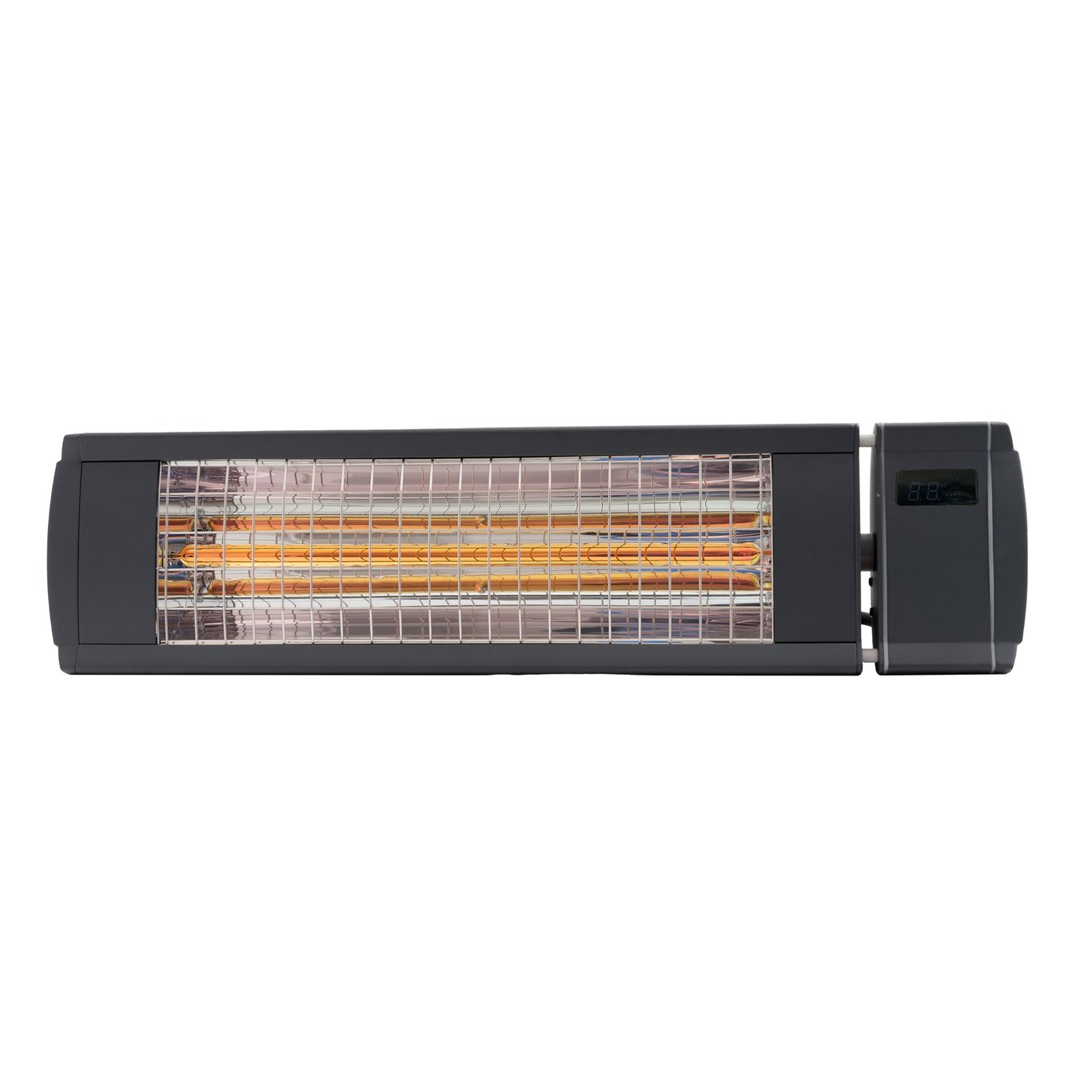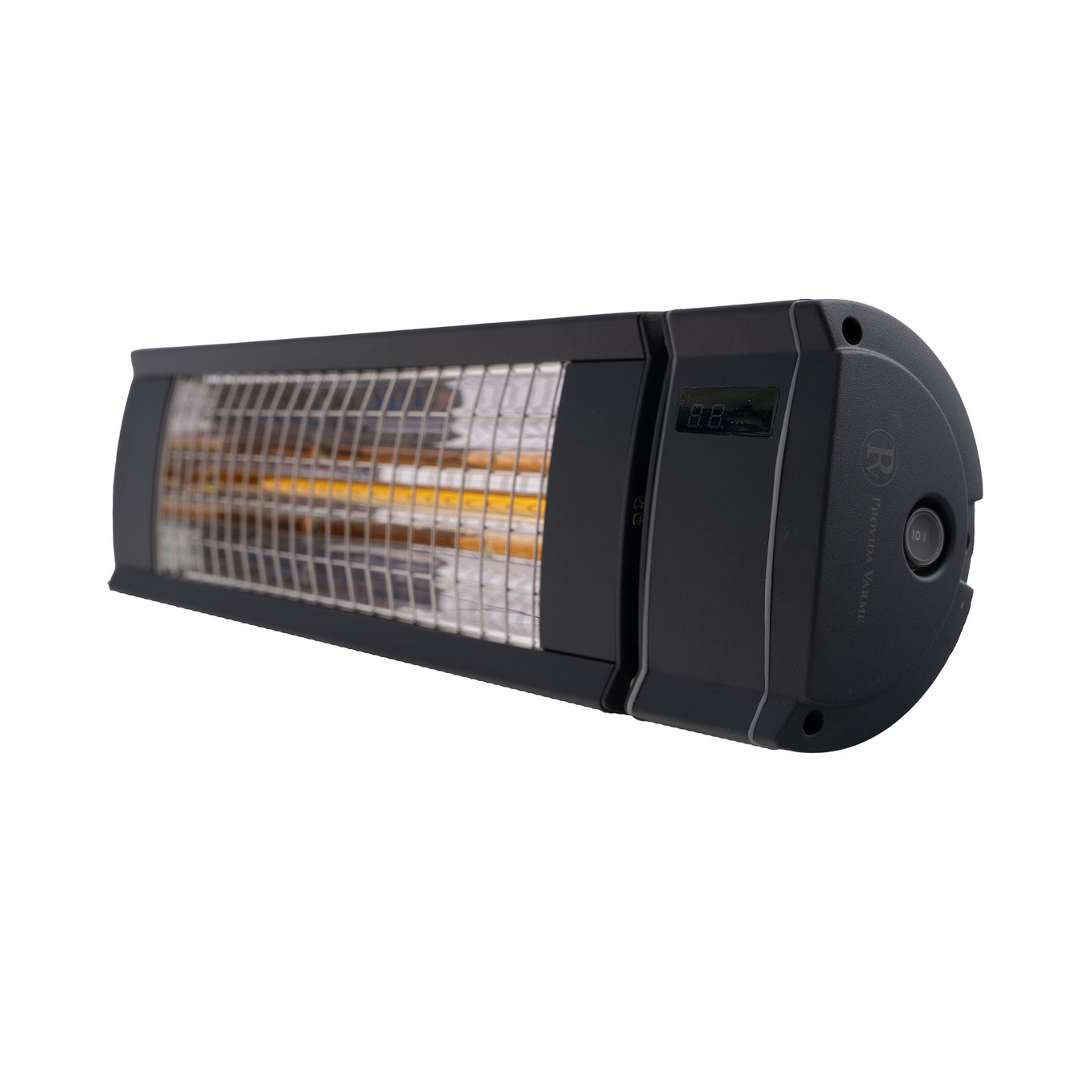 Terrassevarmeren har et LED-display som viser effektnivå og timer, og auto-shut off-funksjonen gjør at den skrur seg av etter åtte timer. Den er laget i formstøpt aluminium, og gitteret i front er svært rustbestandig, noe som gjør at den egner seg til å monteres i sjønære strøk.