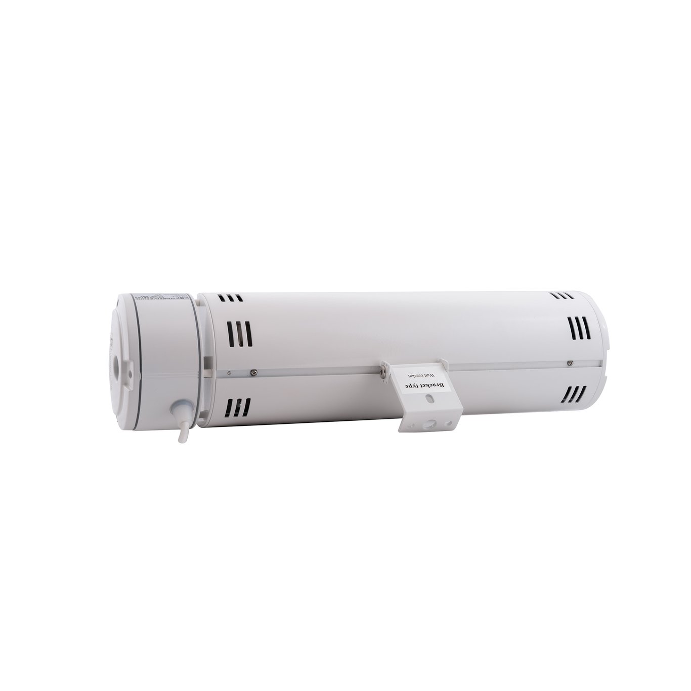 Man kan velge mellom de seks effektnivåene og styre timeren ved hjelp av den medfølgende fjernkontrollen. I tillegg følger det med to braketter for montering, en til vegg og en til tak.
