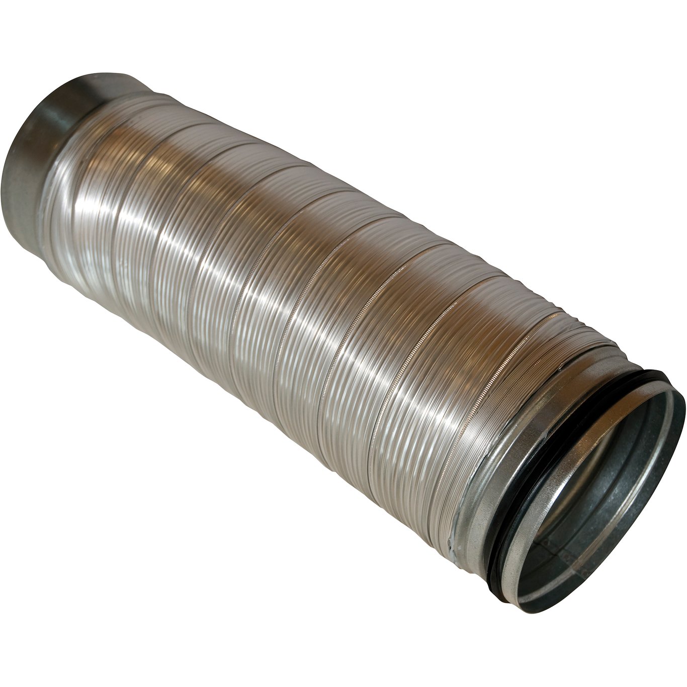 Uisolert aluminiumskanal med muffe i en ende og nippel i andre. Leveres komprimert i 18 cm og trekkes ut til maks 55 cm. Brukes mellom ventilasjonsaggregat og opp til tetteplate i tak. Kan også brukes i andre sammenheng der man har behov for korte fleksible gjennomføringer.