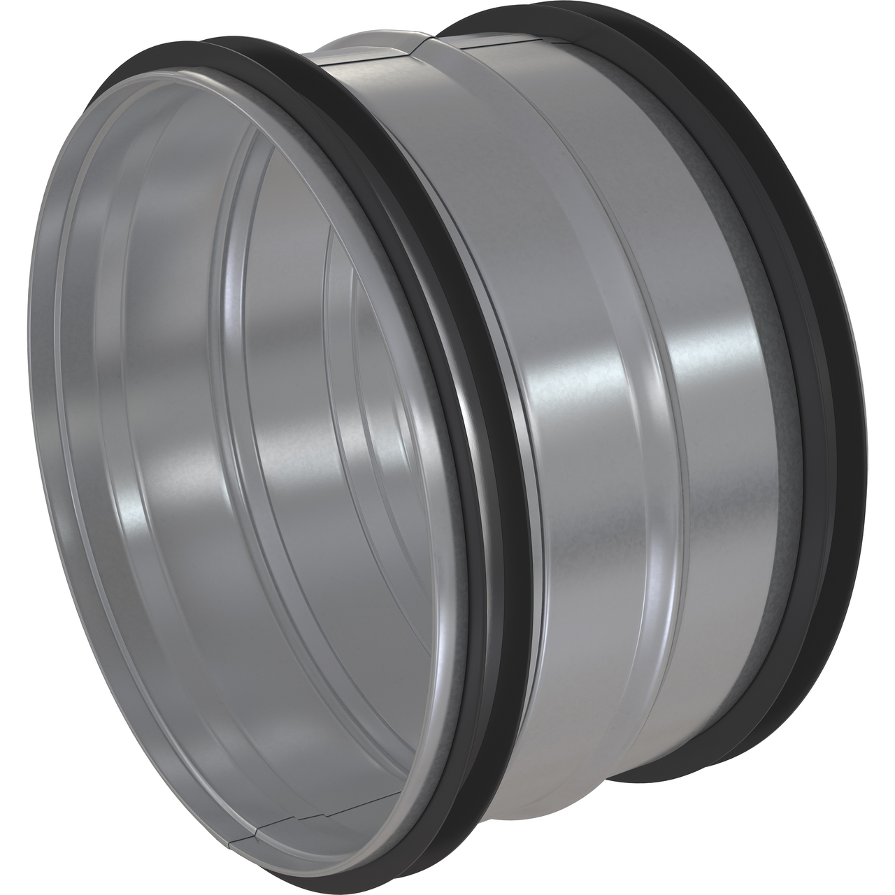 Skjøtenippel med pakning, benyttes for å skjøte kanaler eller slanger. Ø100.