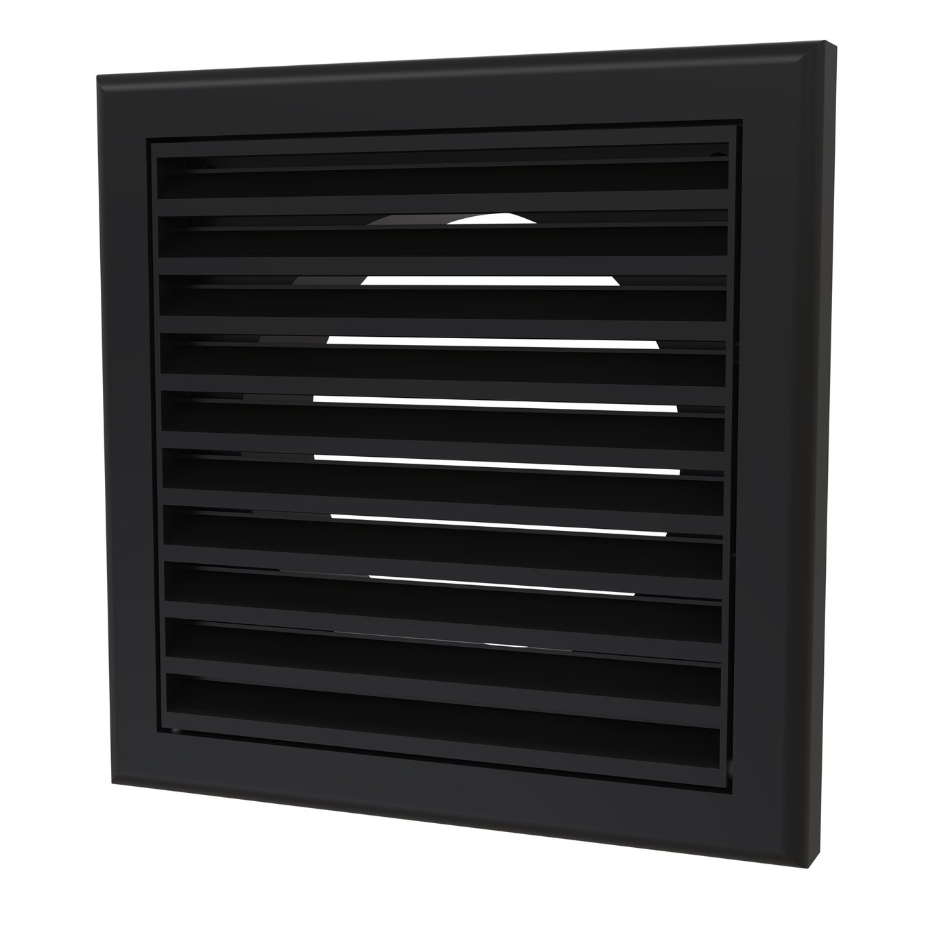 Denne sjalusiristen fra Flexit kommer med firkantet ramme og rund stuss for kanaler med 100 mm diameter.