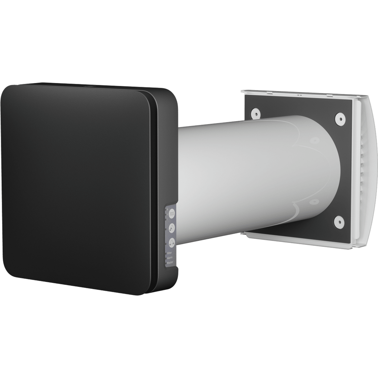 Denne romventilatoren fra Flexit gir ventilasjon med varmegjenvinning i deler av boligjen eller i enkeltrom. Varmen gjenvinnes fra avtrekksluften i en keramisk varmegjenvinner som samtidig gir temperert og filtrert tilluft.