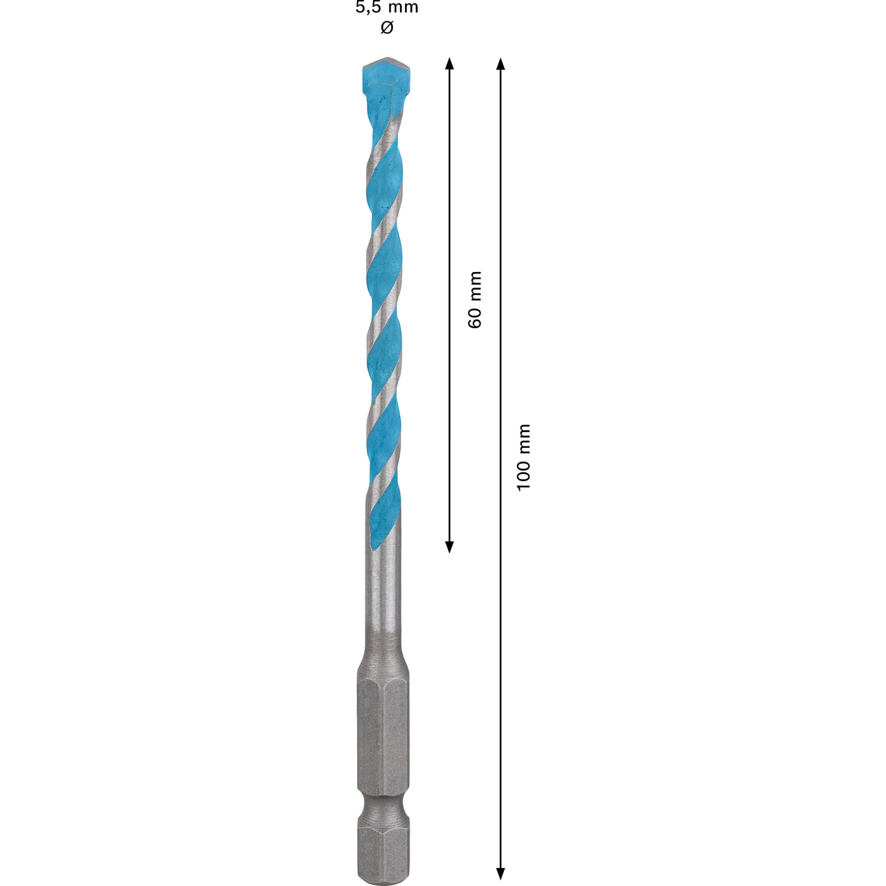Diameter: 5,50 mmArbeidslengde: 60 mmTotal lengde: 100 mmSkafttype: SekskantSkaftstørrelse: 1/4"Bruksområde: Multikonstruksjon (tre, metall, plast, mur, fliser m.m.)