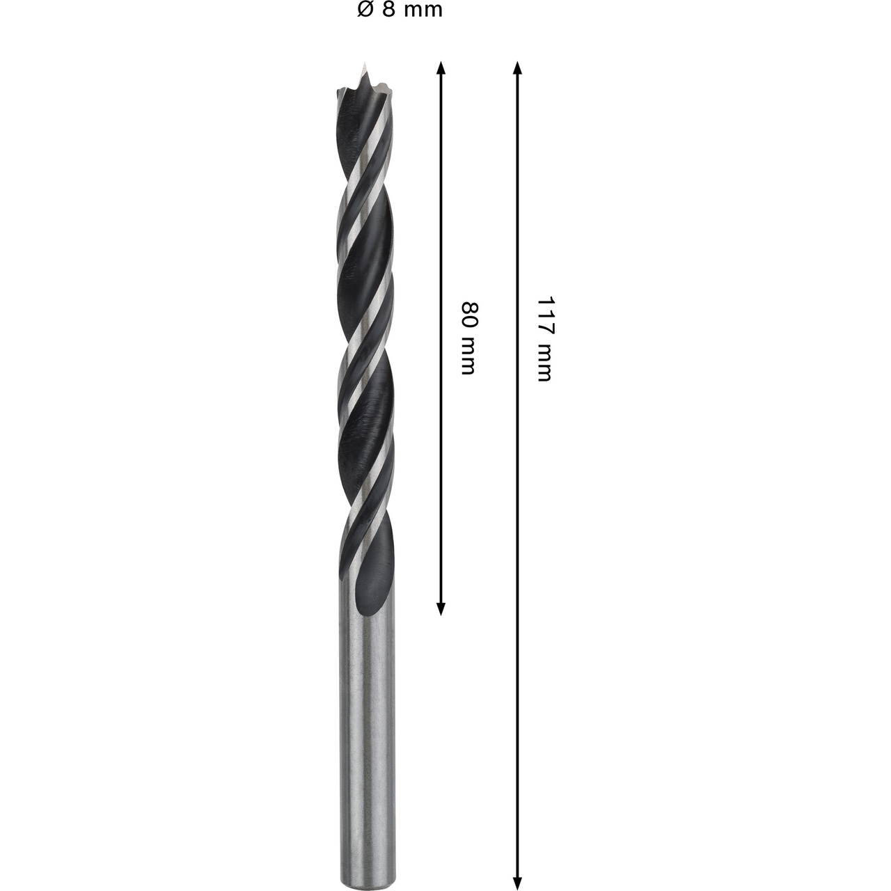 Diameter: 8 mmArbeidslengde: 80 mmTotal lengde: 117 mmTangdiameter: 8 mmFestetype: Sylindrisk skaftBruksområde: TreverkLeverandørens varenummer2608577711