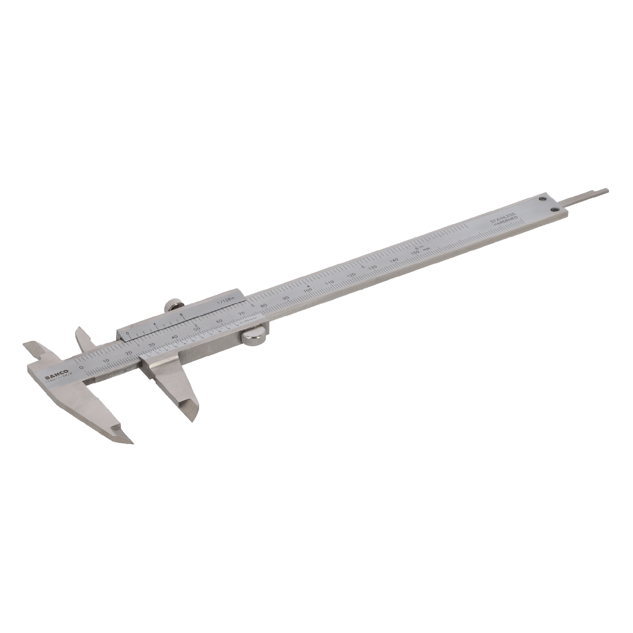 Fremstilt av herdet rustfritt stålMåleområde 0-150 mm eller 0-6"Låsbar skyvemekanisme
