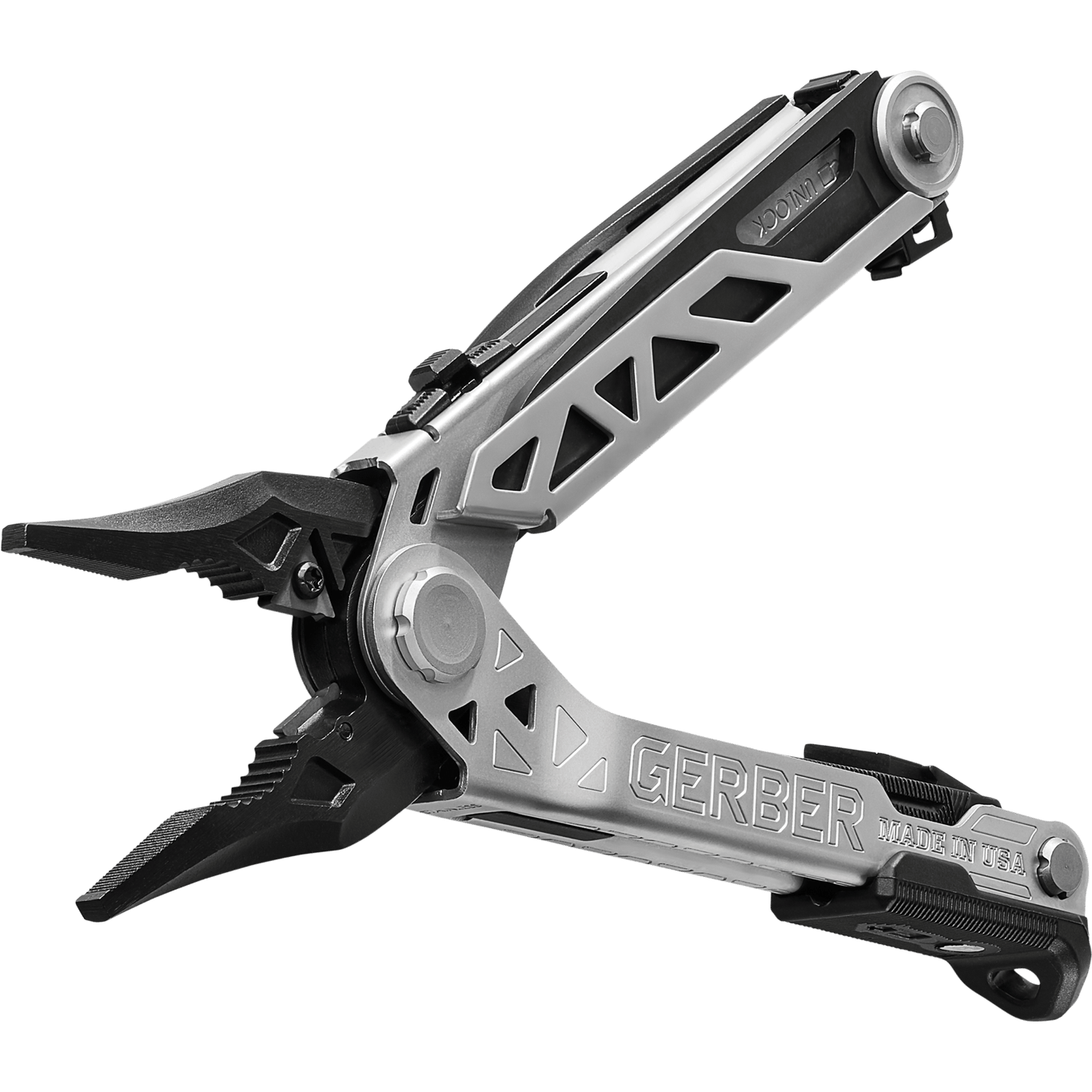 Dette multiverktøyet fra Gerber fjorten praktiske verktøy, blant annet en tang og en skrutrekker med standardbits. Den fjærbelastede tangen åpnes enkelt med én hånd.