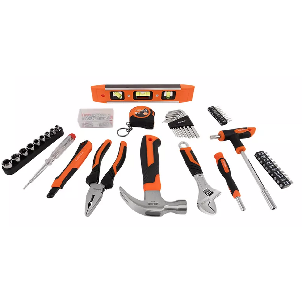 Dette er et allsidig og praktisk verktøysett som dekker de fleste behov innen enkle reparasjoner, montering og vedlikehold i hjemmet. Settet inneholder et bredt utvalg av håndverktøy og tilbehør.