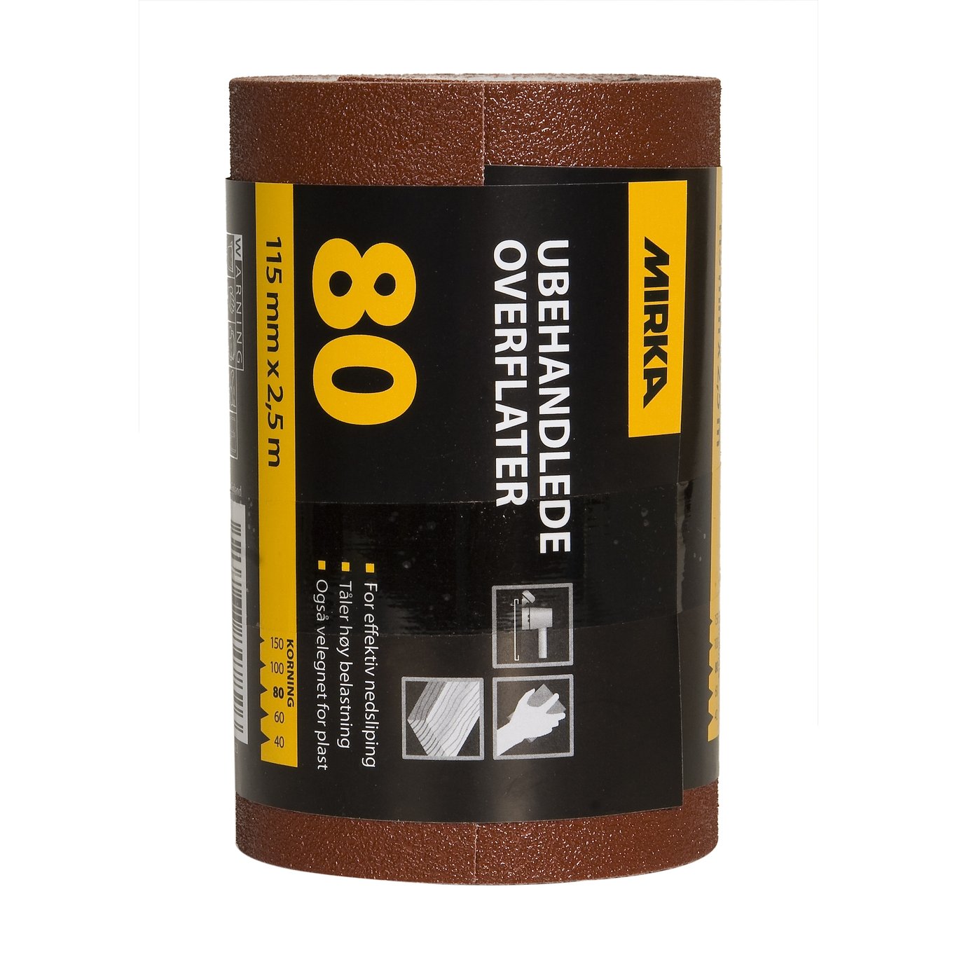 MIRKA SLIPERULL UBEHANDLET 115MM X 2.5M K80