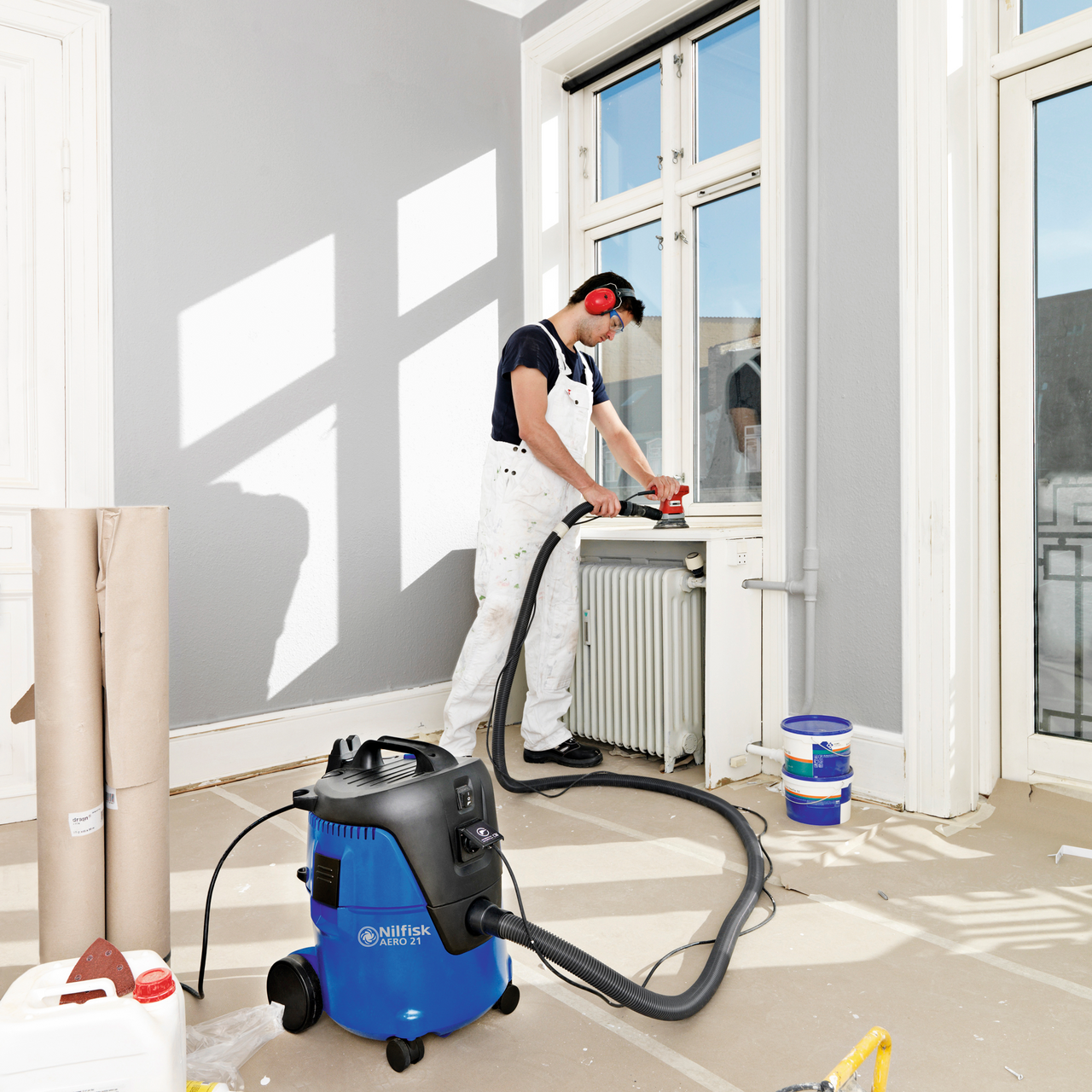 Den har et kompakt design og semiautomatisk Push&Clean filterrengjøringssystem, blåsefunksjon og praktisk oppbevaring av tilbehør. AERO 21 holder både omgivelsene og luften fri for støv samtidig med at støynivået er lavt.