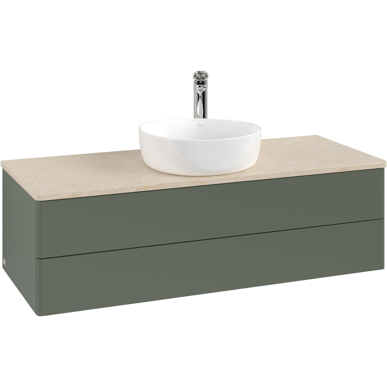 V&b antao servantskap 2 skuffer glatt 1200x360x500 m/kranhull m/lys grønn/créme