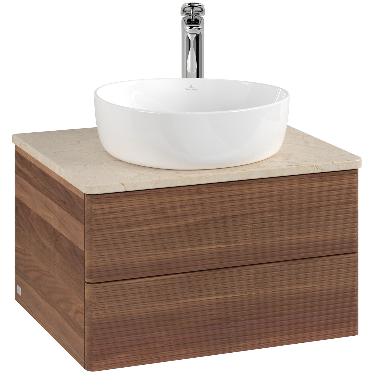 V&b antao servantskap 2 skuffer rillet 600x360x500 m/kranhull valnøtt/créme