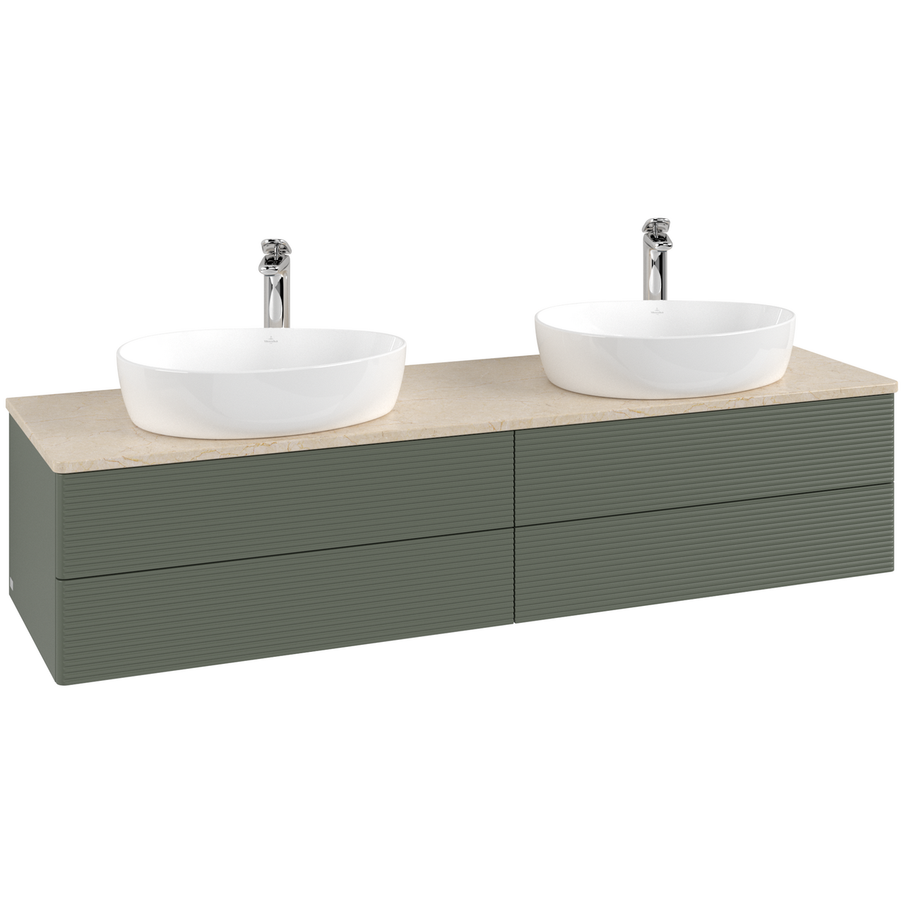 V&b antao servantskap 4 skuffer rillet 1600x360x500 for 2 serv. m/kranhull grønn/créme