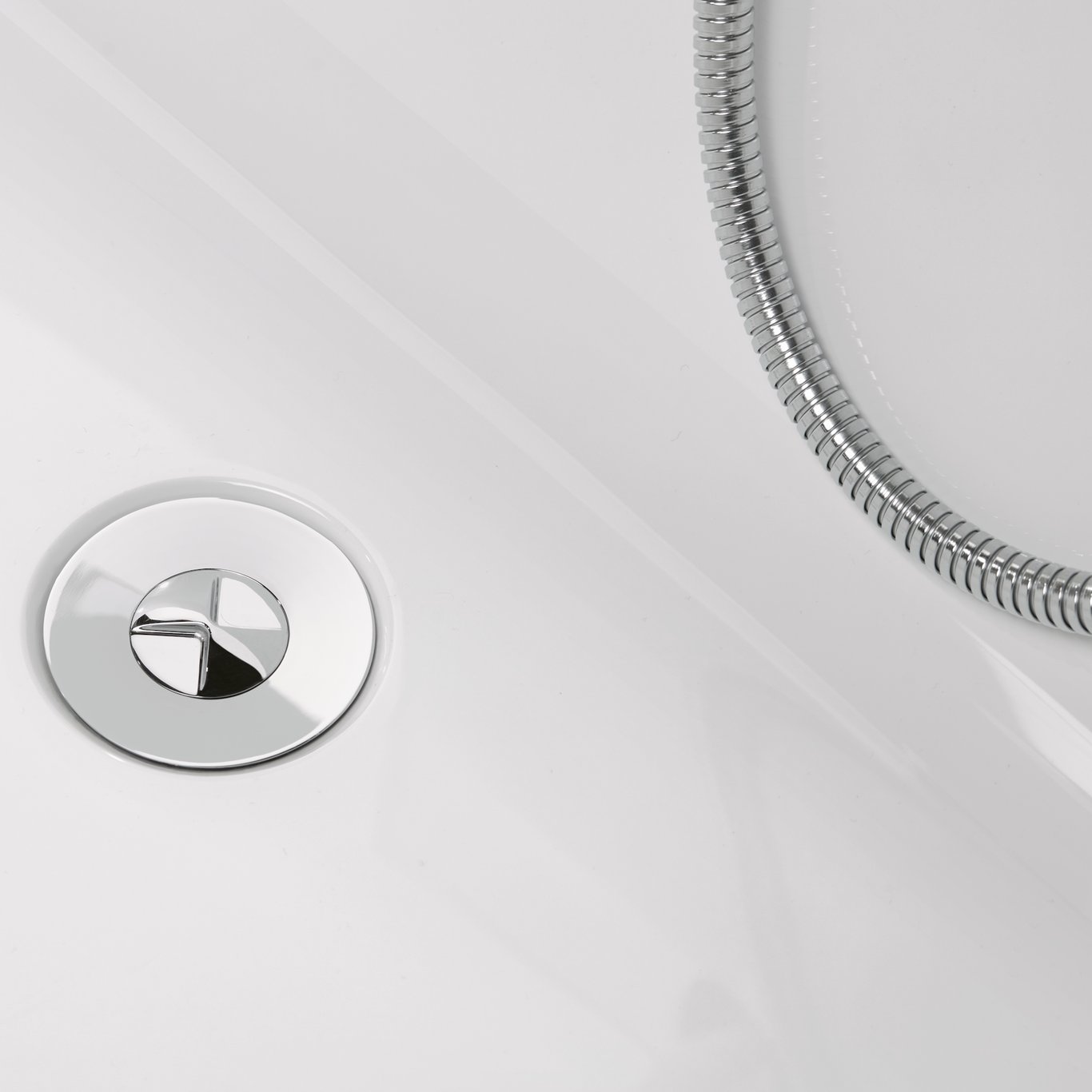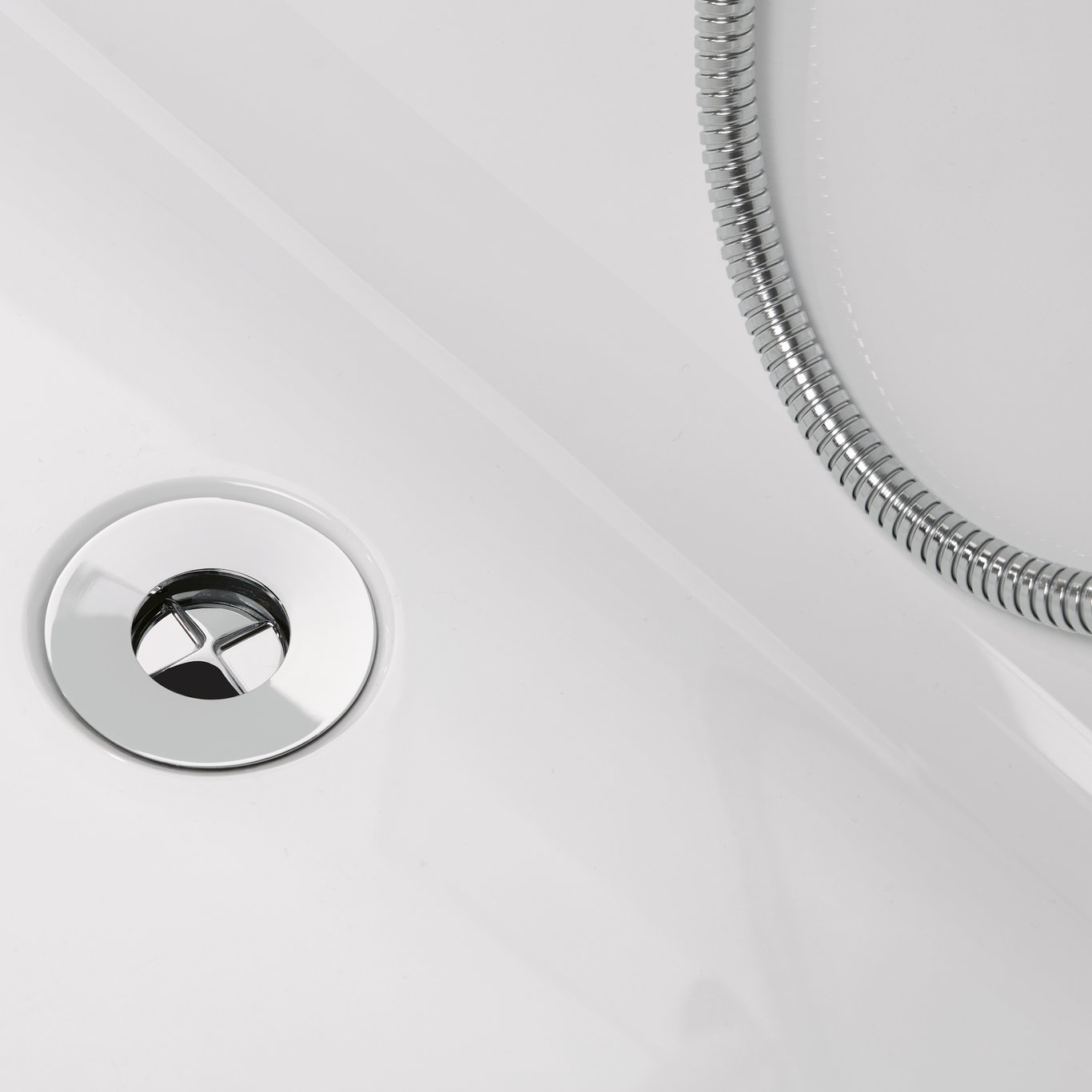 Laget av svært slagfast, støtsikker og ripesikker Quaryl®Rustfri stålrammeFrittstående badekar