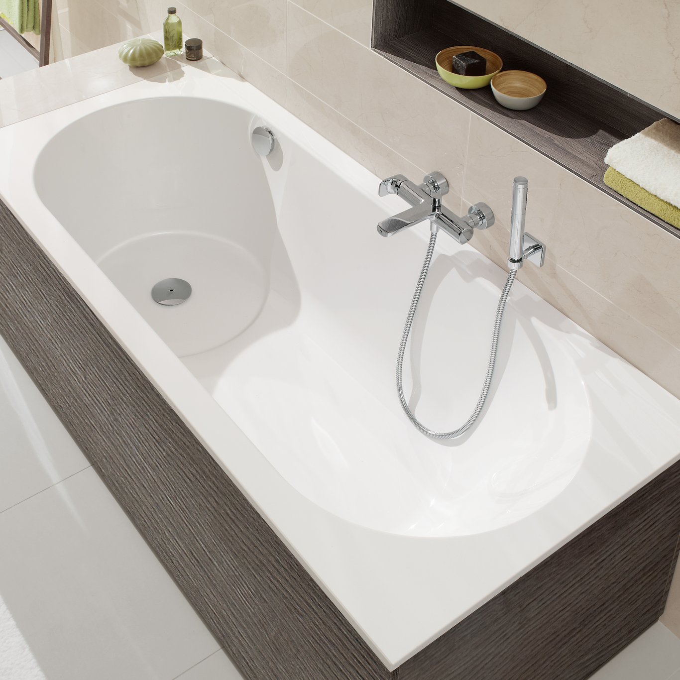 Villeroy & Bochs Libra-badekar lover maksimal komfort. Badekarene med sin rektangulære form gir mye plass til å strekke seg ut og slappe av, mens den høye ryggstøtten gir perfekt støtte.