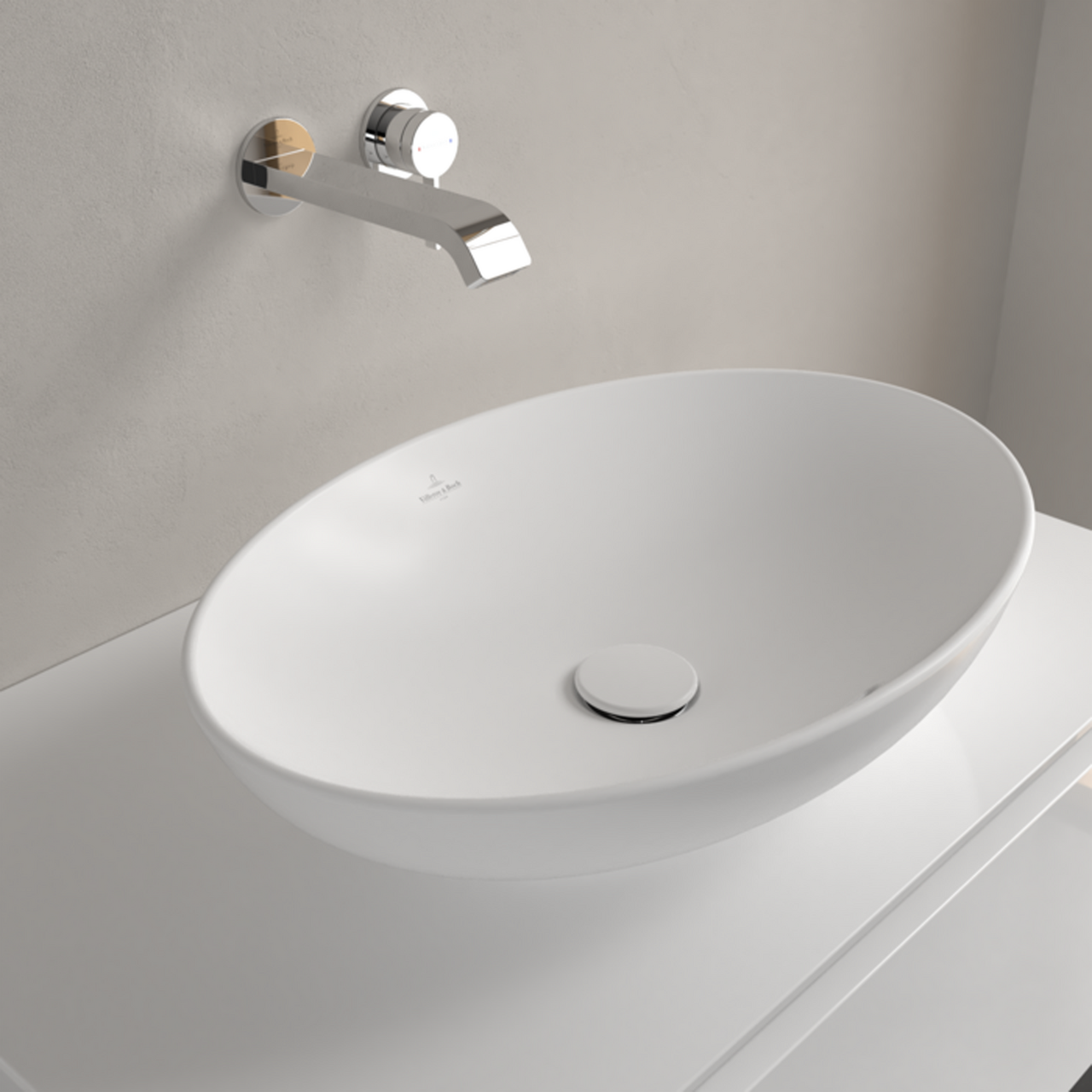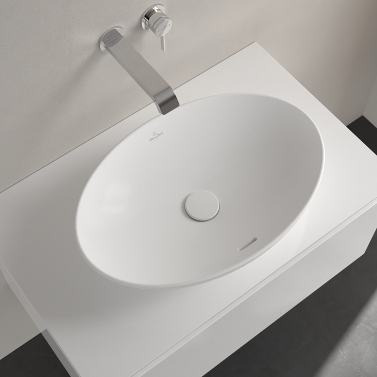 Denne servanten fra Villeroy & Boch er beregnet for montering på servantplate eller benkeplate. Servanten er laget i en helt ny type keramisk materiale, som har alle egenskapene til høykvalitets keramikk og likevel er uvanlig sterkt.
