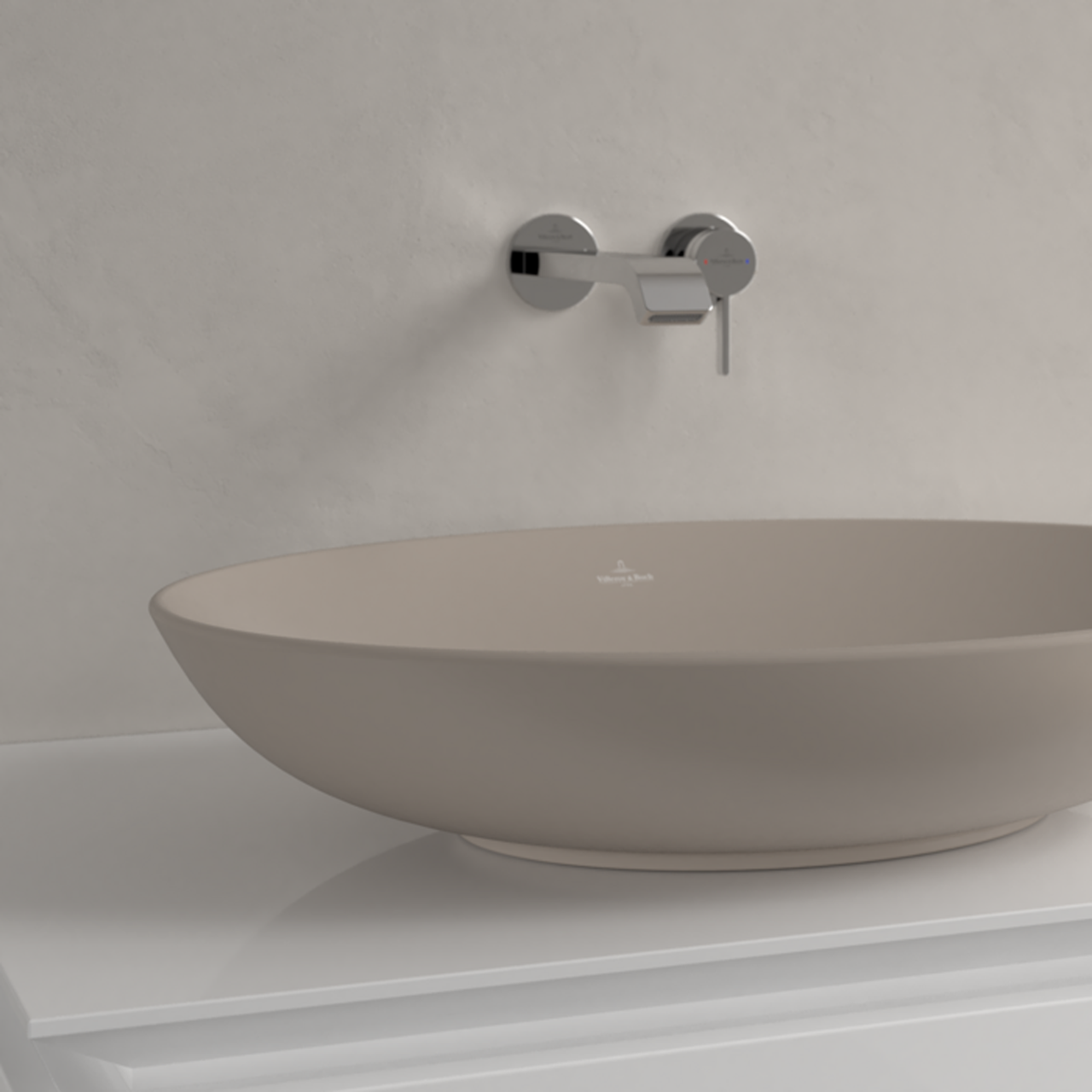 Denne servanten fra Villeroy & Bosch er beregnet for montering på servantplate eller benkeplate. Servanten er laget i en helt ny type keramisk materiale, som har alle egenskapene til høykvalitets keramikk og likevel er uvanlig sterkt.