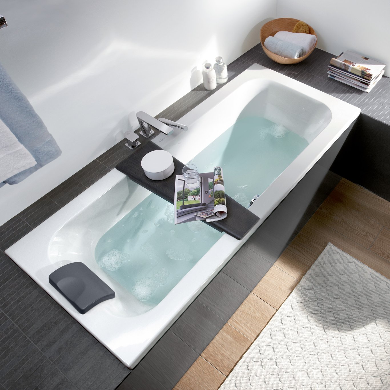 Villeroy & Bochs badekar lover maksimal komfort. Badekarene med sin rektangulære form gir mye plass til å strekke seg ut og slappe av, mens den høye ryggstøtten gir perfekt støtte.