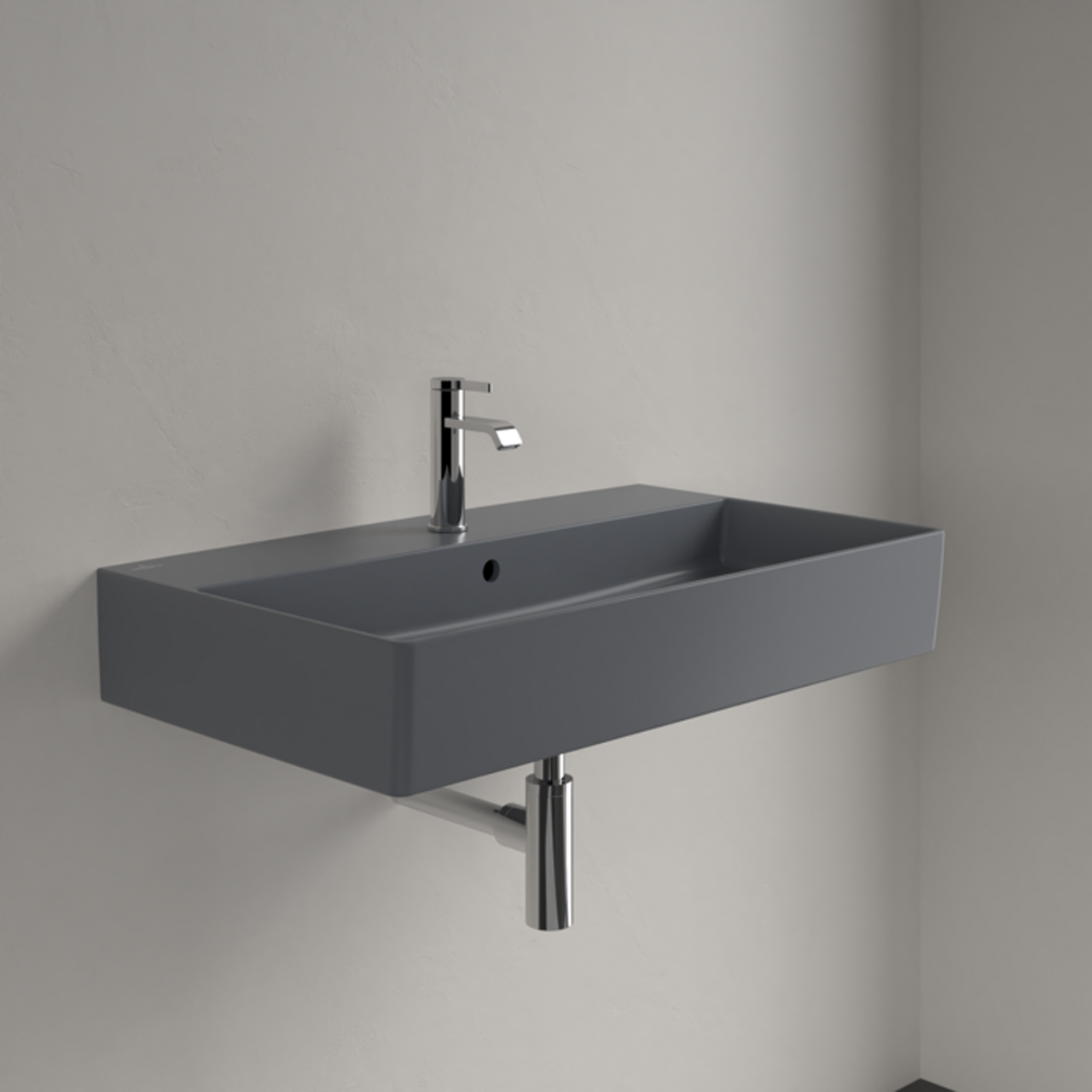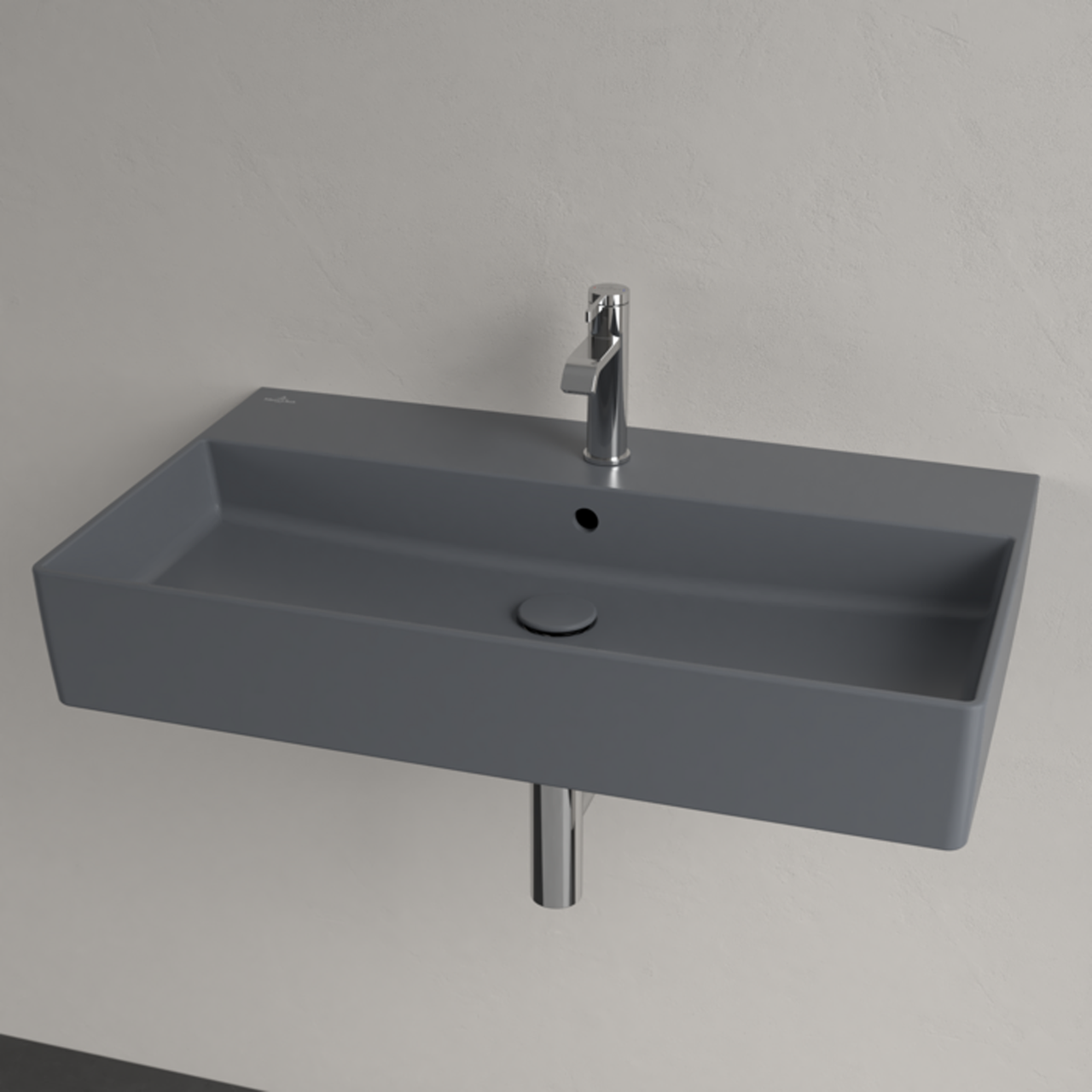 Memento 2.0 er en grå matt servant beregnet for veggmontering. Servanten kommer med hull til blandebatteri og er utført i Villeroy & Bochs TitanCeram-porselen, som tillater ekstra tynne servantvegger som fortsatt er både solide og lettstelte. Matte farger er moderne, og denne servantserien gir badet ditt et urbant utseende.