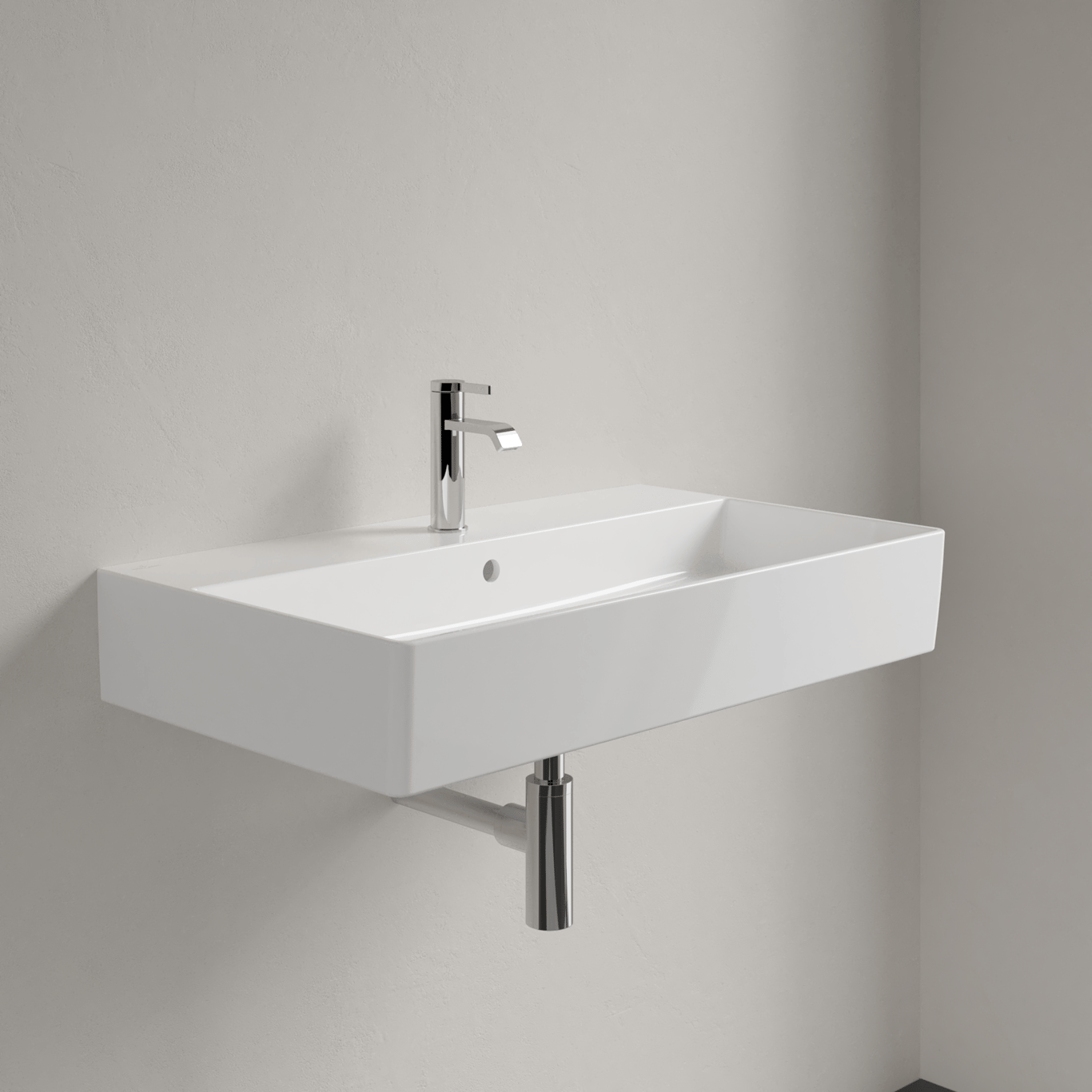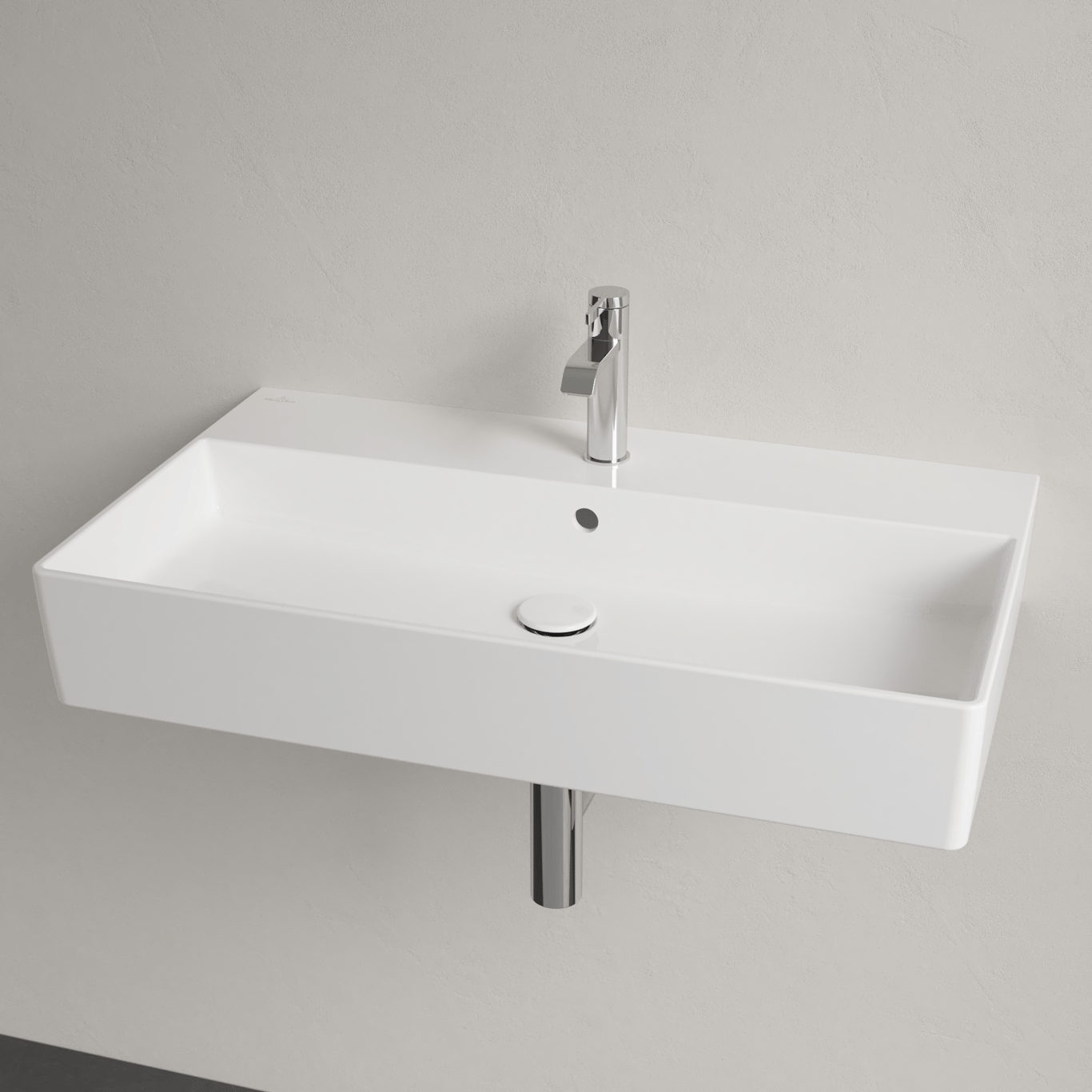 Denne servanten fra Villeroy & Boch har et stilrent design med rette linjer. Den kan både topp- og veggmonteres.
