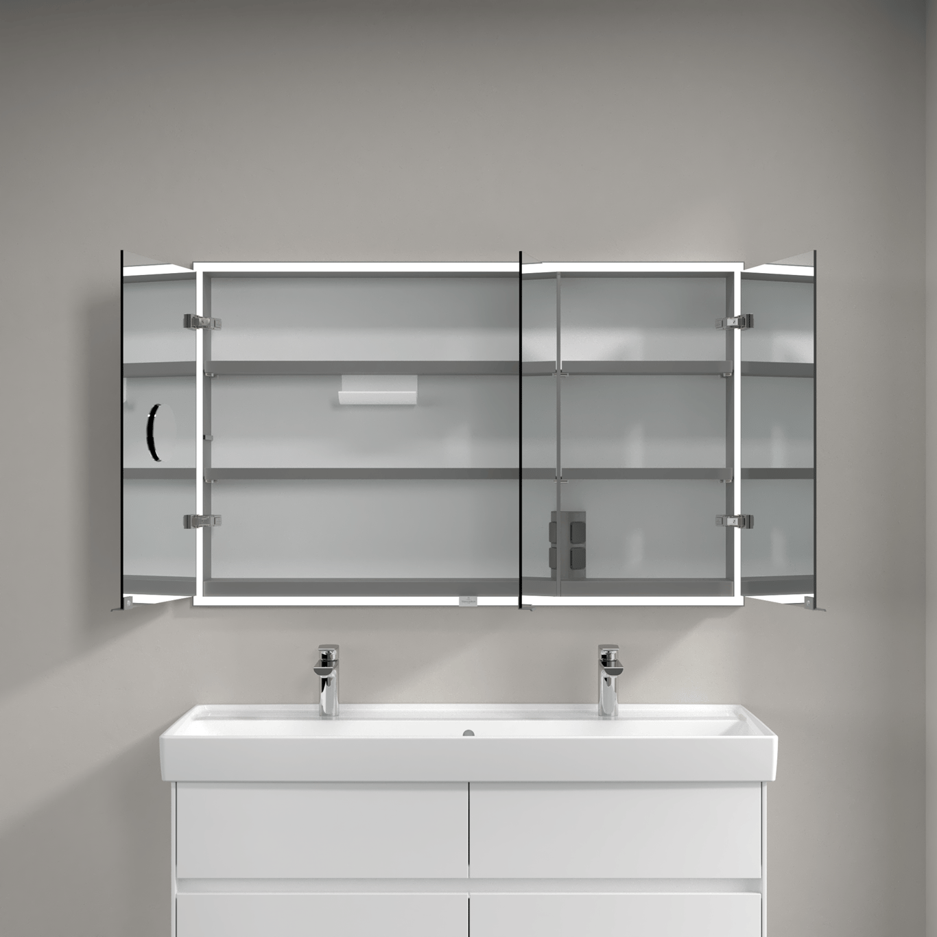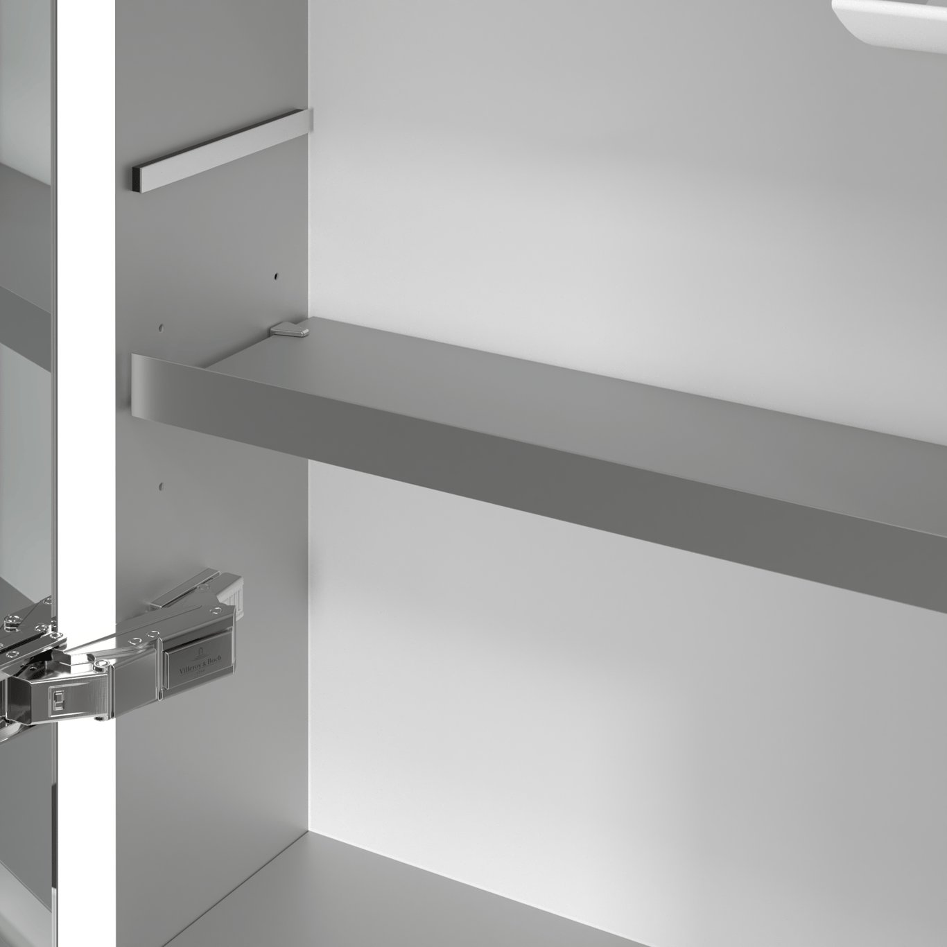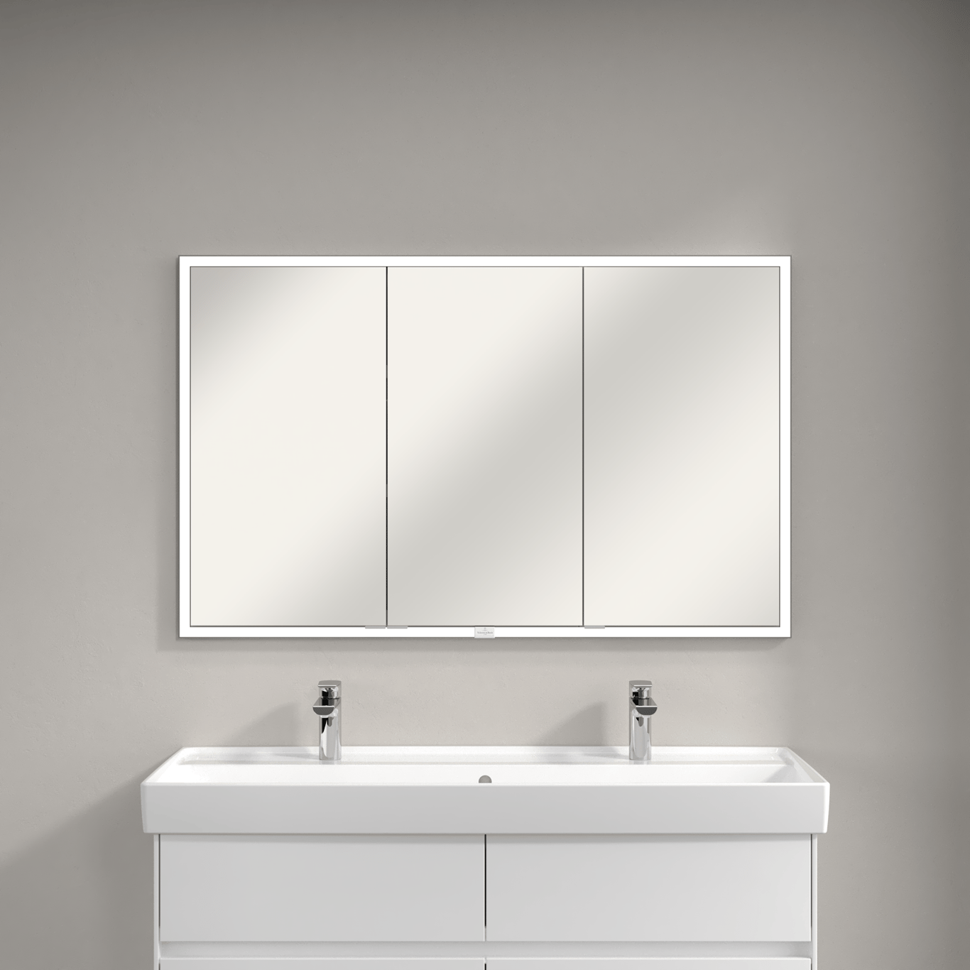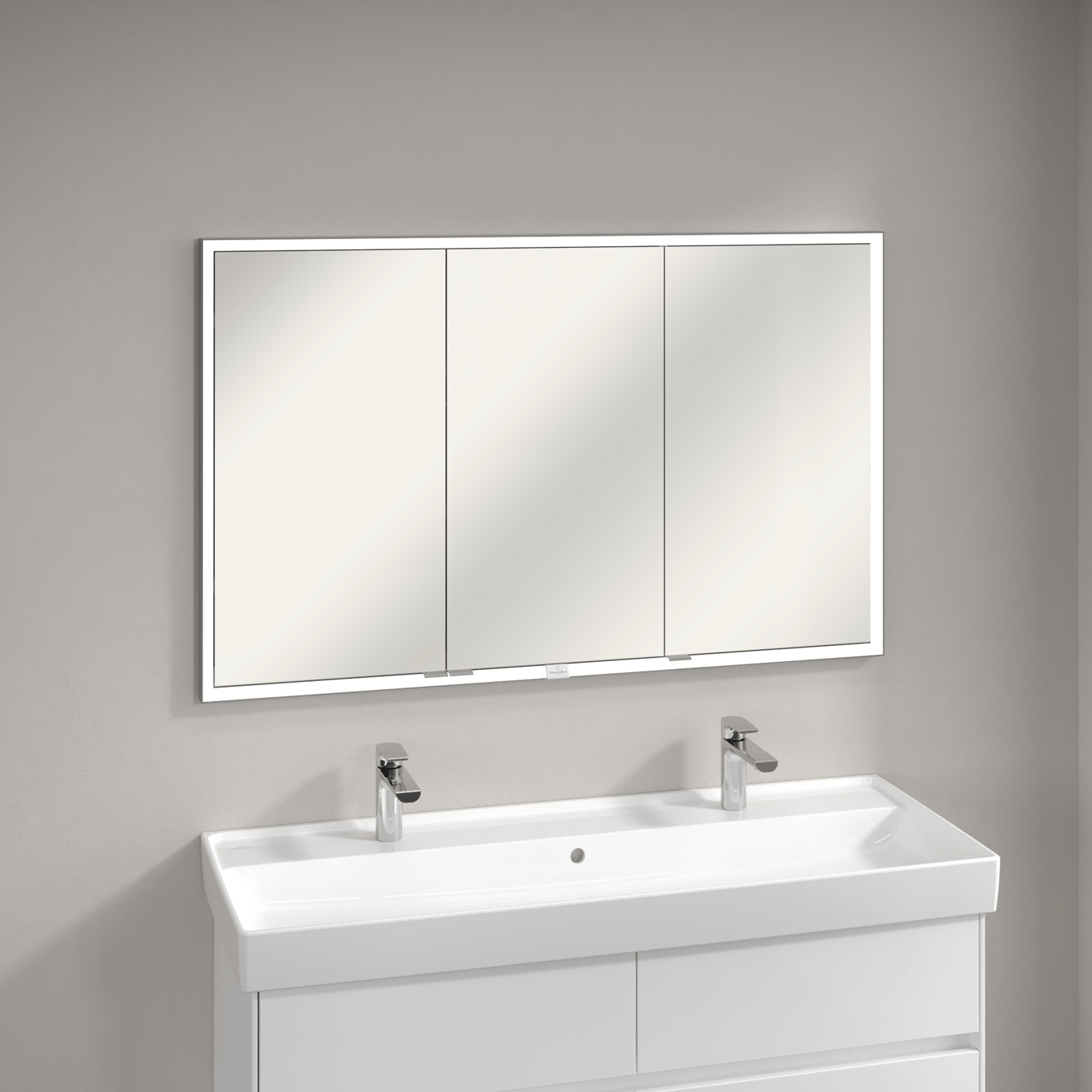 Dette speilskapet fra Villeroy & Boch er laget for å bygges inn i veggen og har integrert LED-lys, og et smart system for oppbevaring av baderomsartikler.