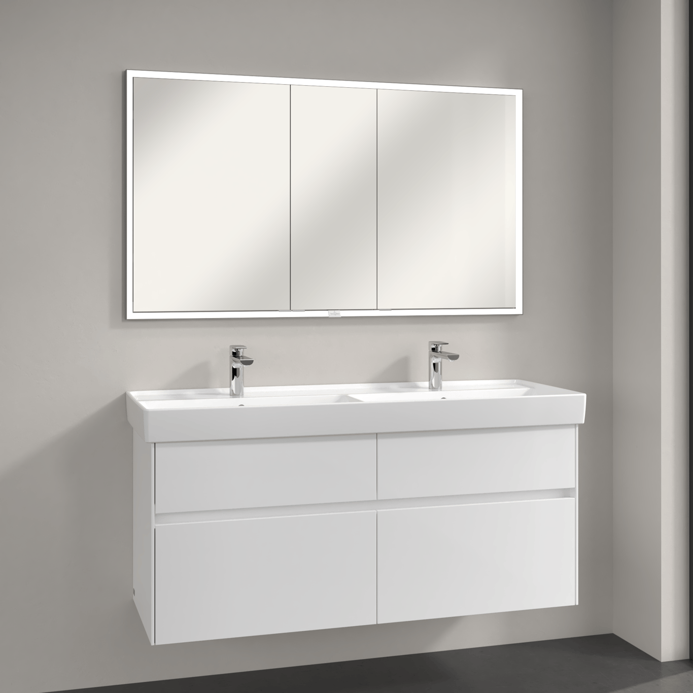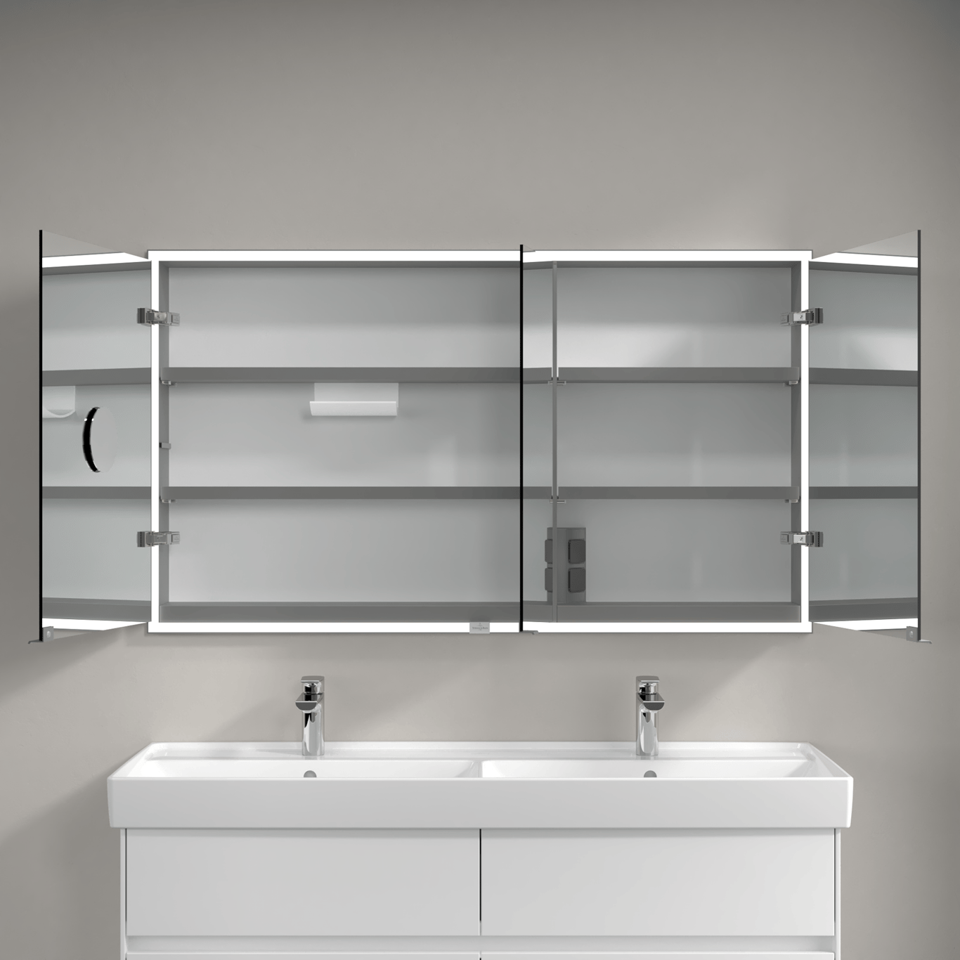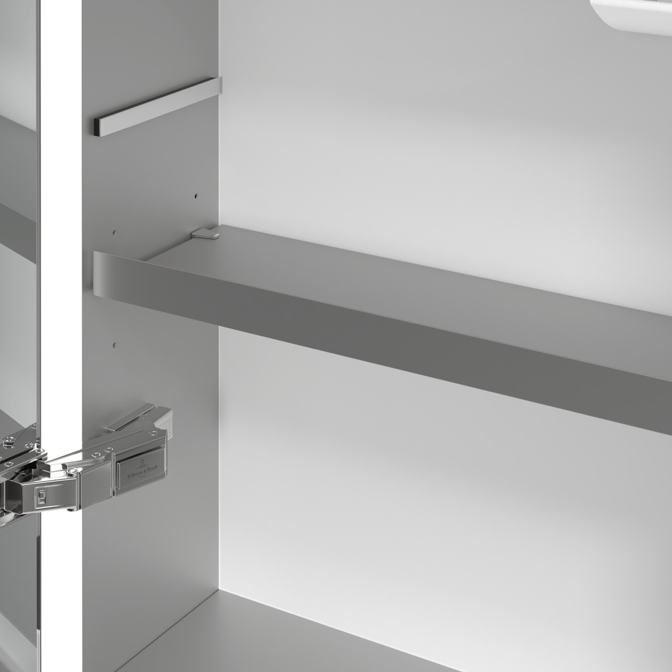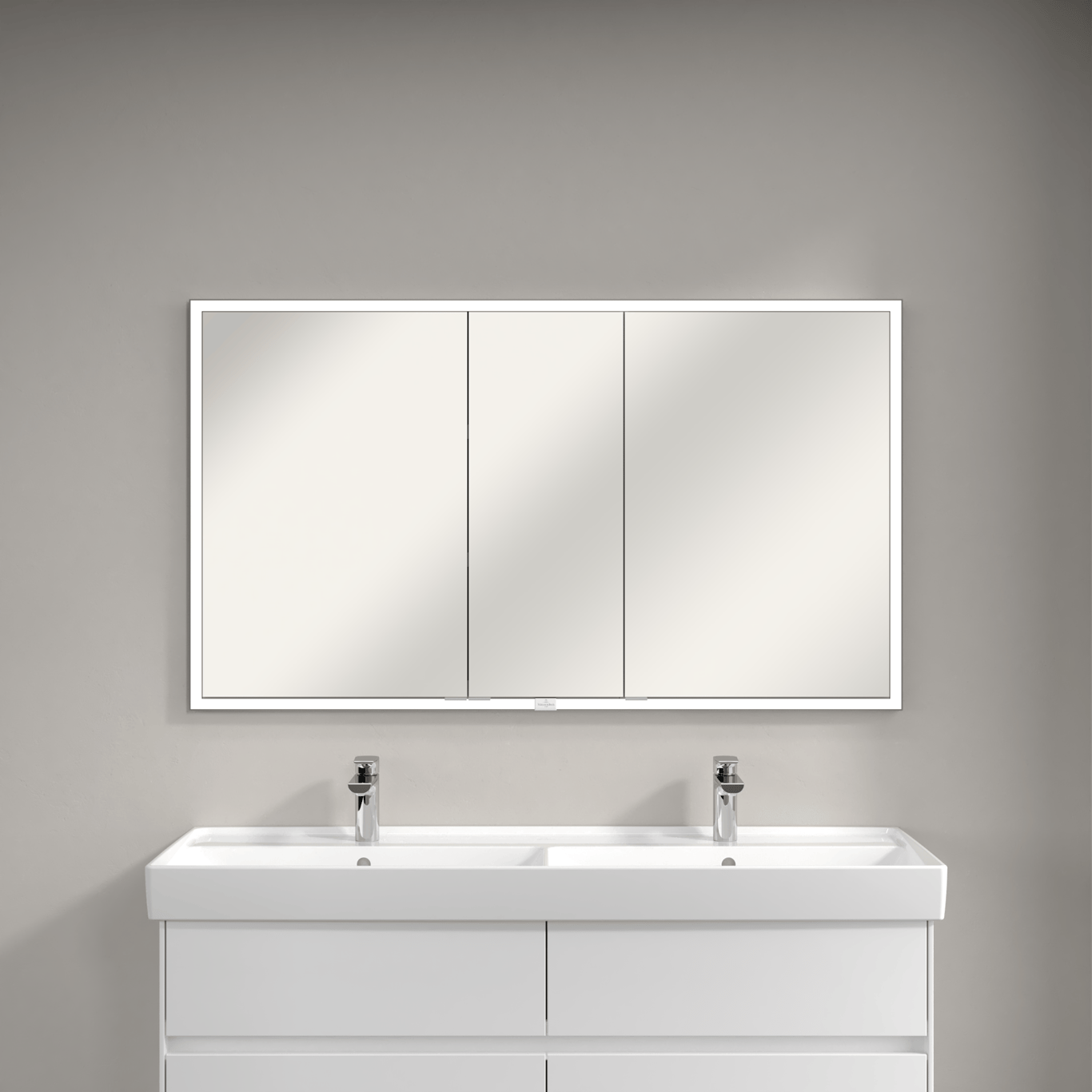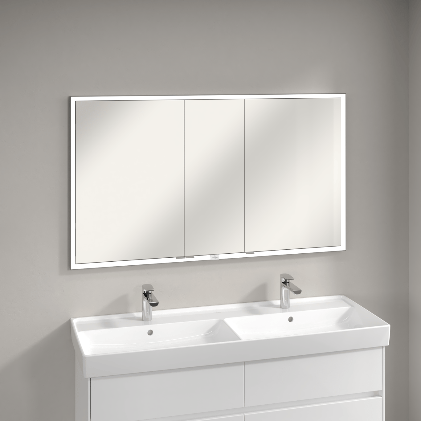 Dette speilskapet fra Villeroy & Boch er laget for å bygges inn i veggen og har integrert LED-lys, og et smart system for oppbevaring av baderomsartikler.