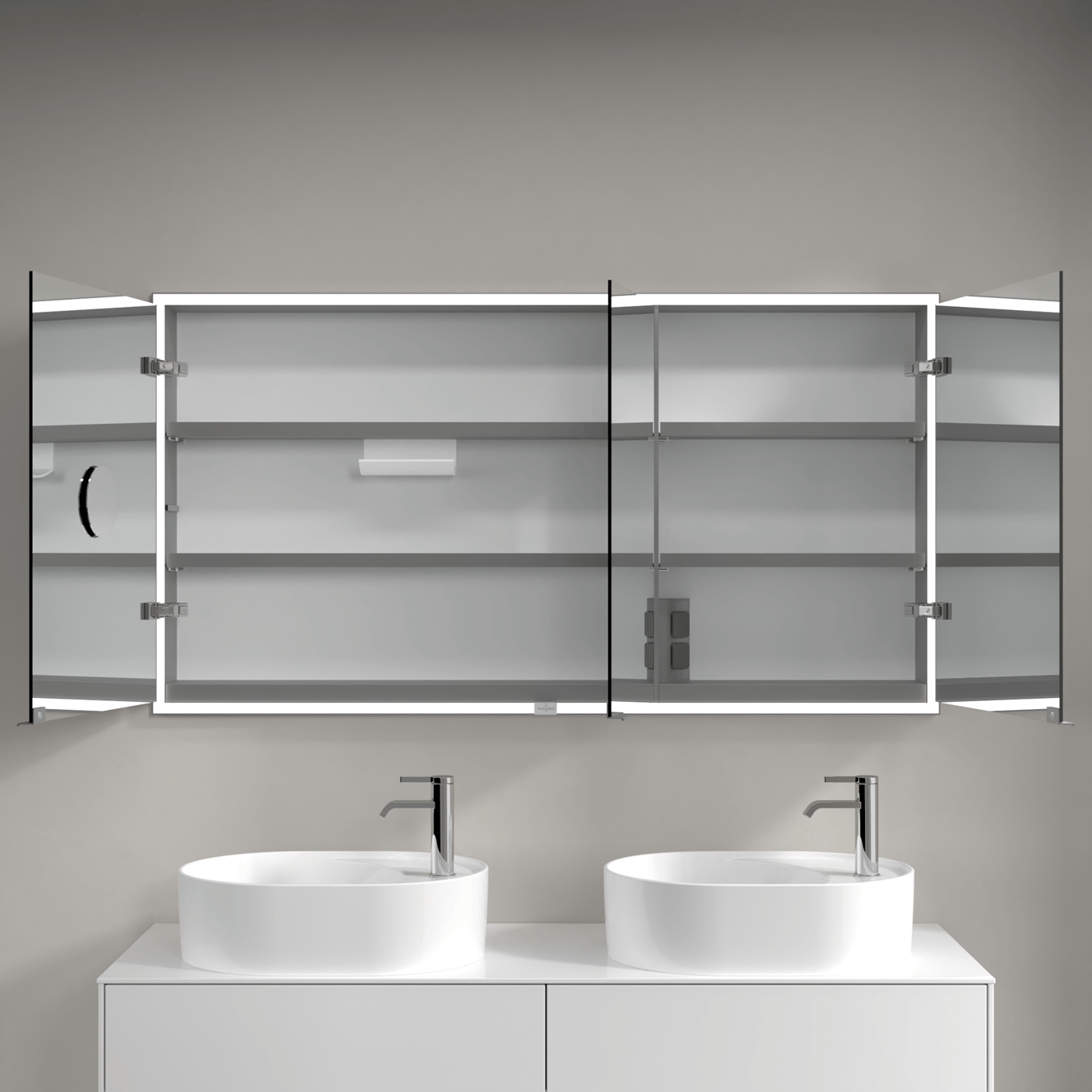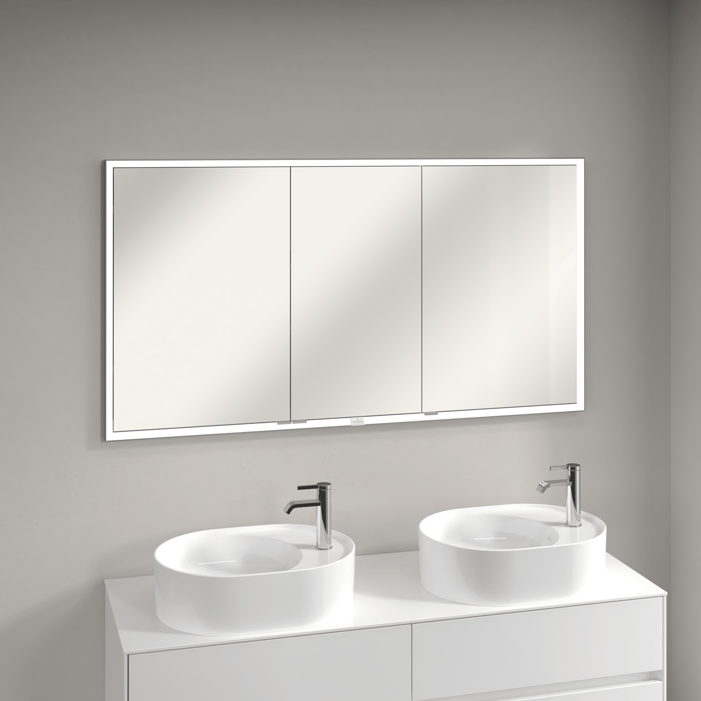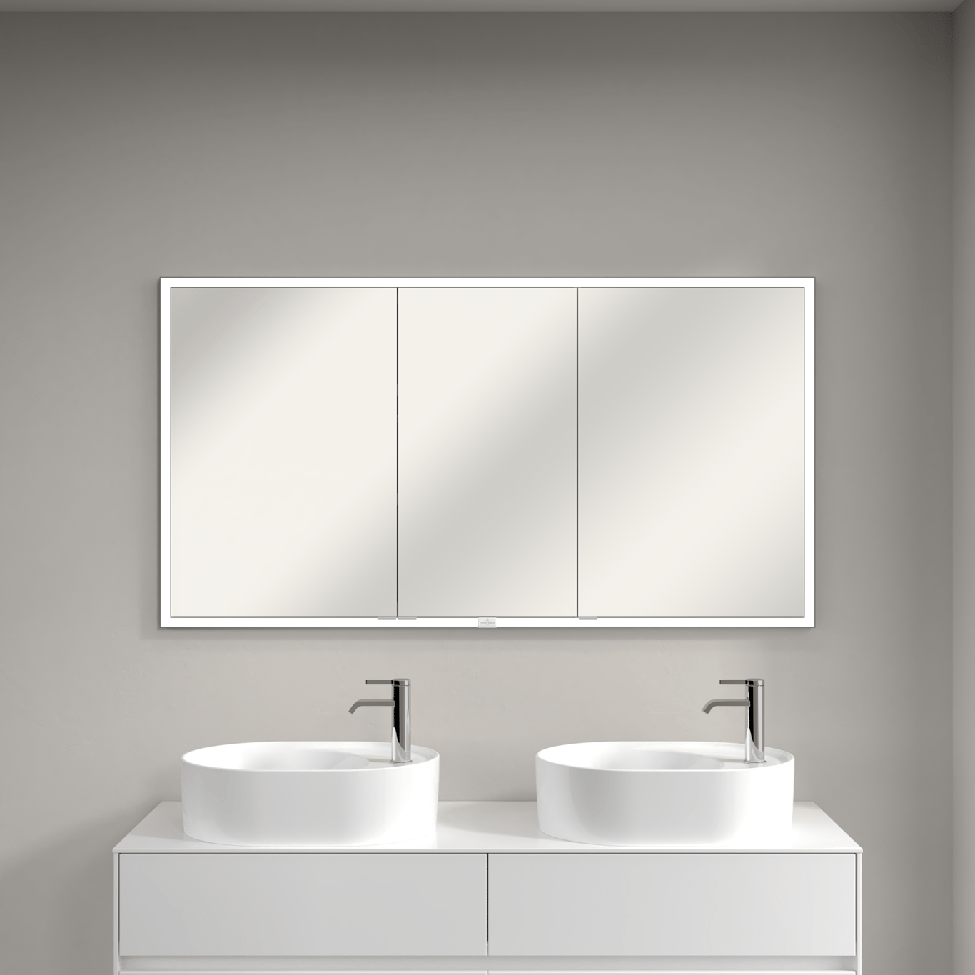 Dette speilskapet fra Villeroy & Boch er laget for å bygges inn i veggen og har integrert LED-lys, og et smart system for oppbevaring av baderomsartikler.