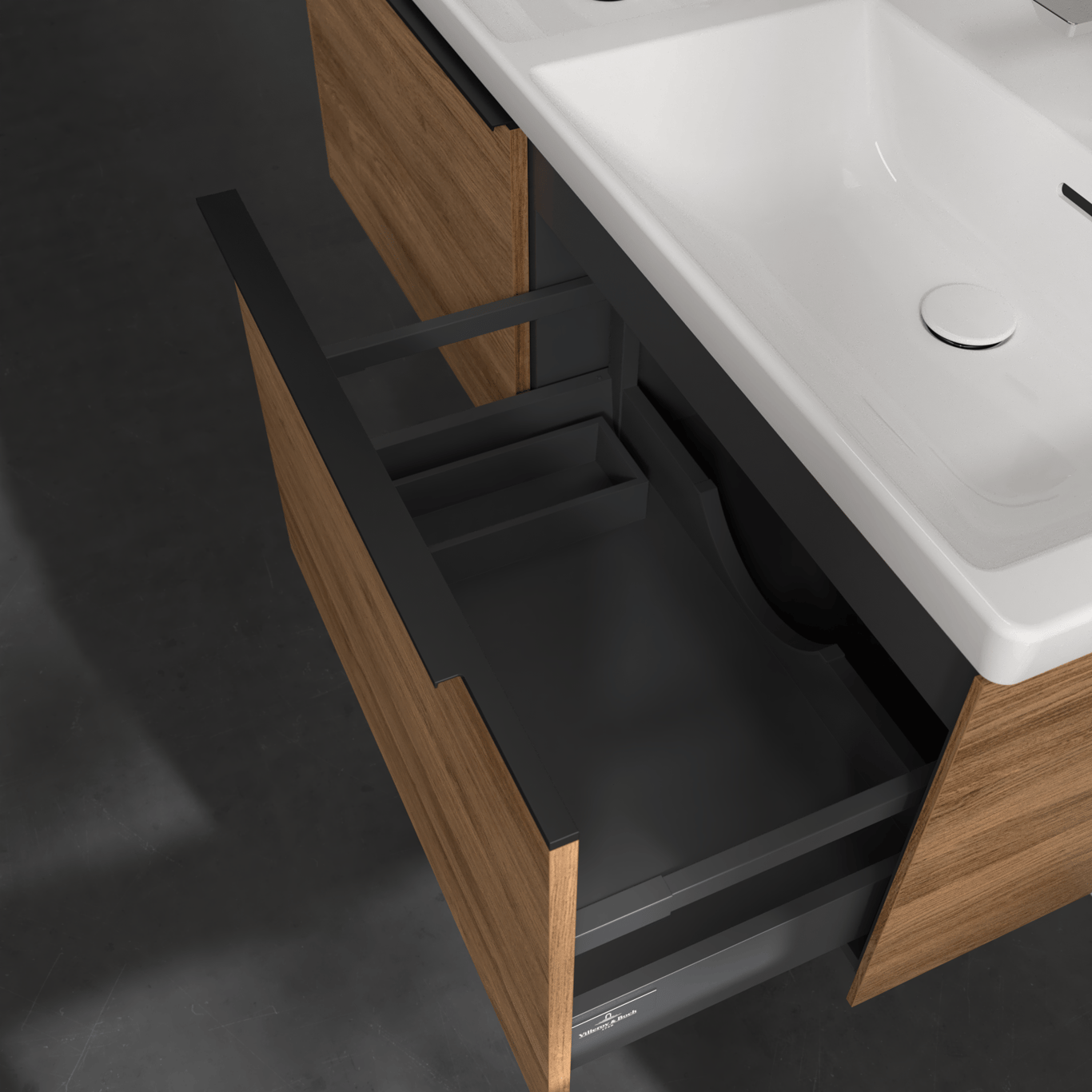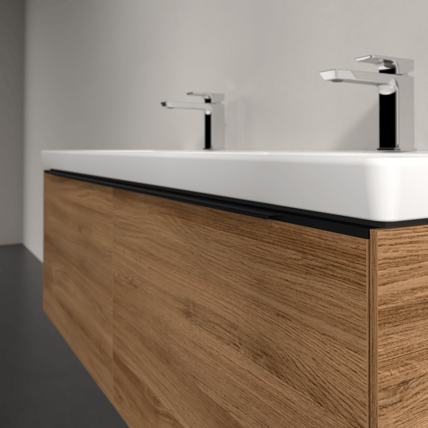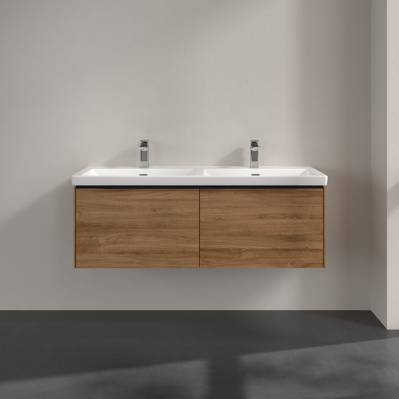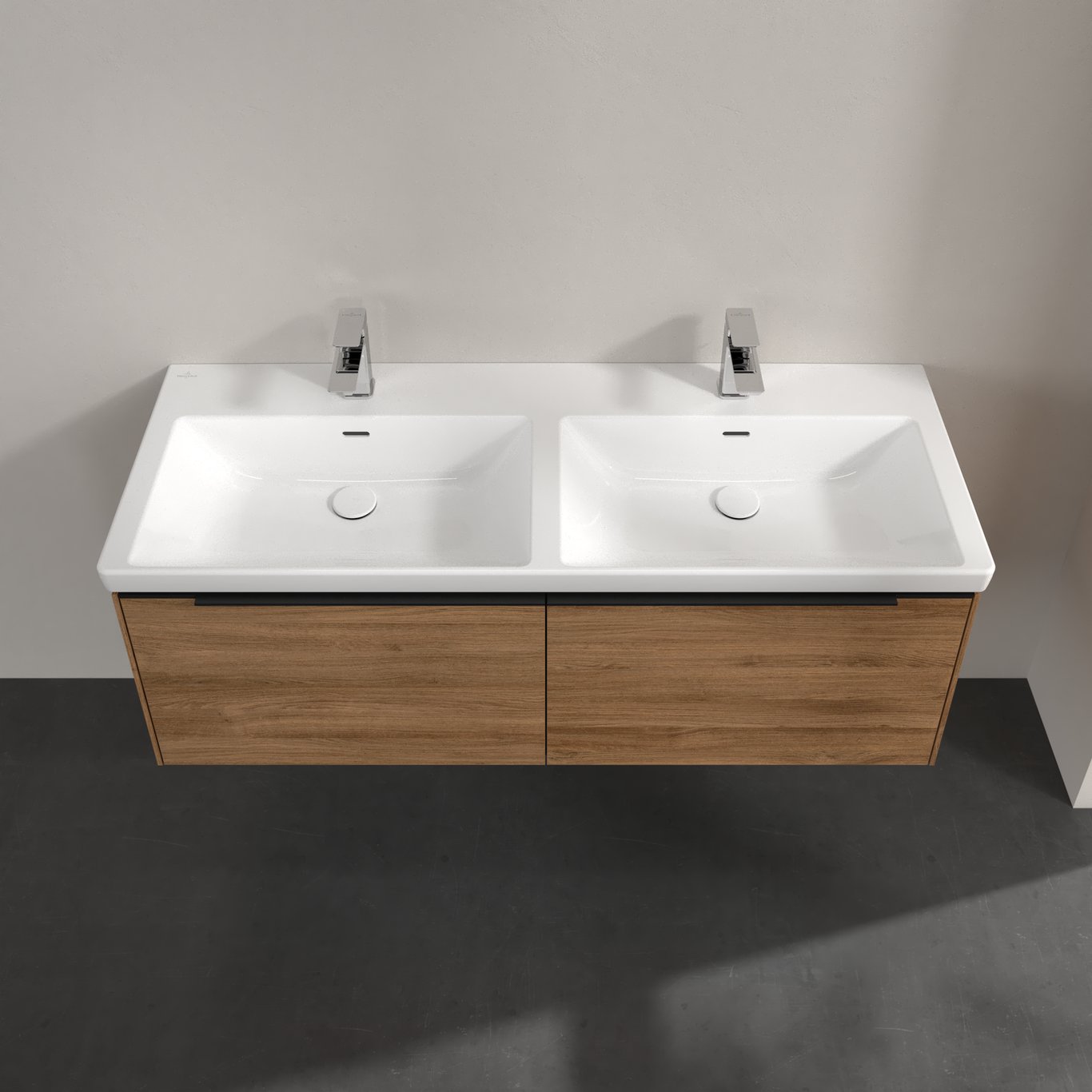 V&b subway 3.0 servantskap 127x42 f/dobbel servant kansas oak håndtak i volcano black