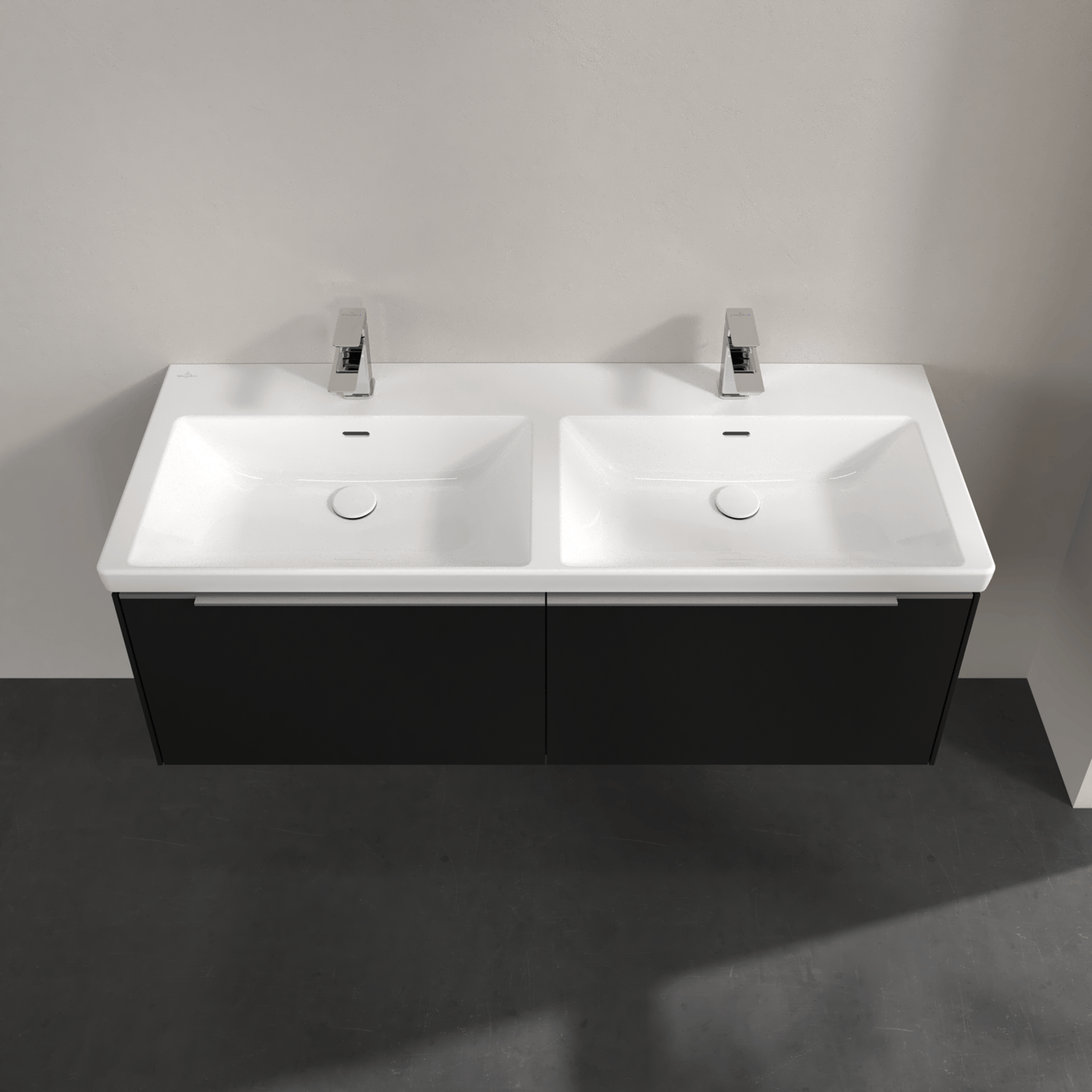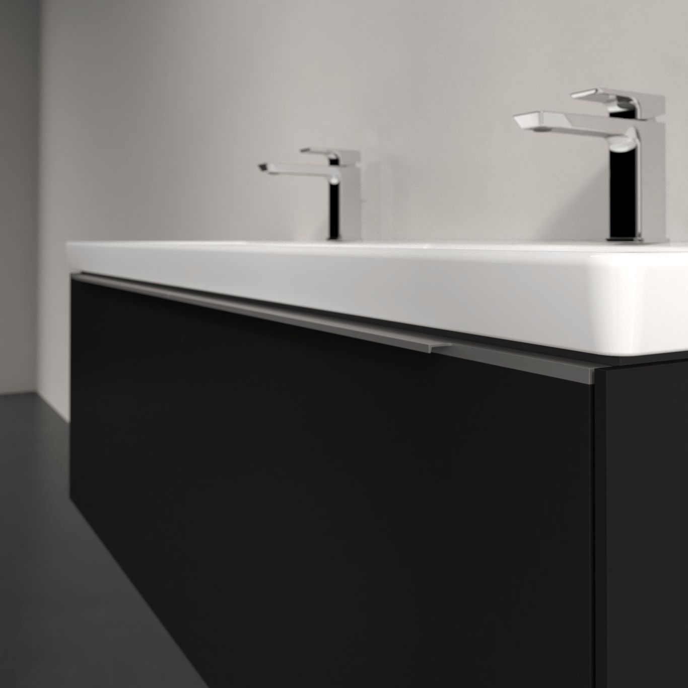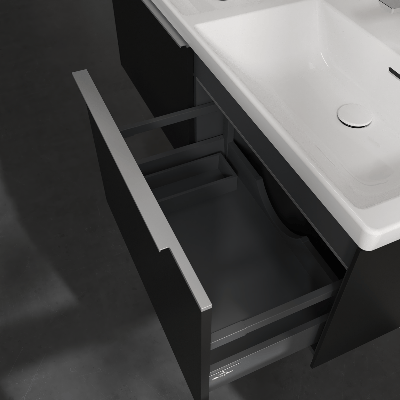 V&b subway 3.0 servantskap 127x42 f/dobbel servant volcano black m/lys håndtak i krom