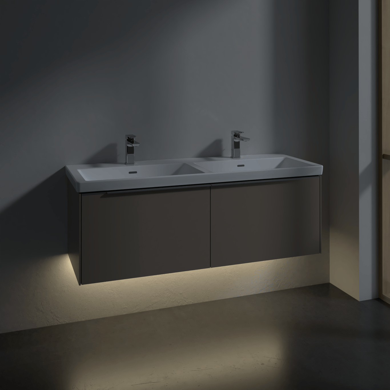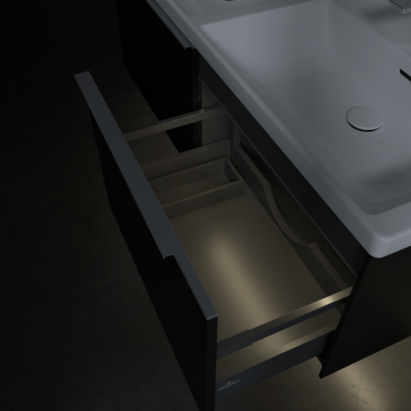 V&B SUBWAY 3.0 SERVANTSKAP 127X42 F/DOBBEL SERVANT VOLCANO BLACK M/LYS HÅNDTAK I KROM