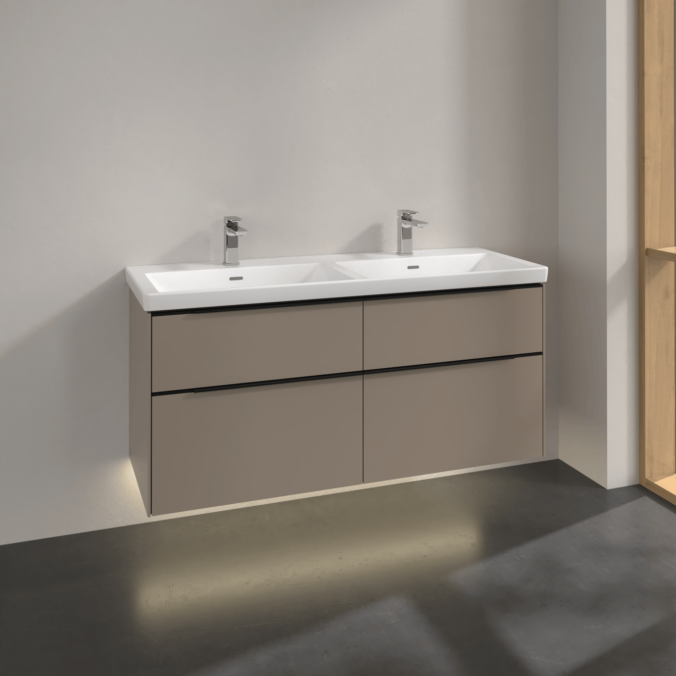 V&b subway 3.0 servantskap 127x57 f/dobbel servant black taupe m/lys håndtak i volcano