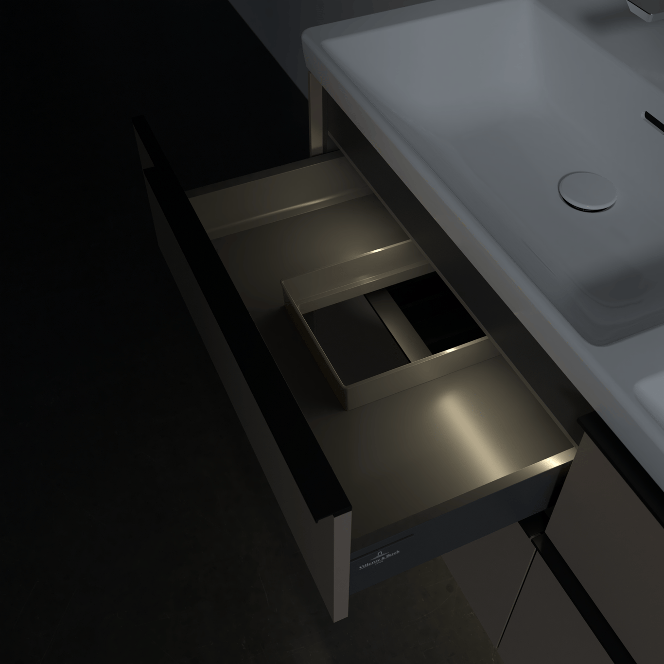 V&B SUBWAY 3.0 SERVANTSKAP 127X57 F/DOBBEL SERVANT BLACK TAUPE M/LYS HÅNDTAK I VOLCANO