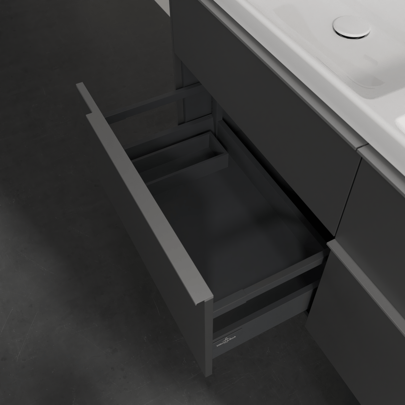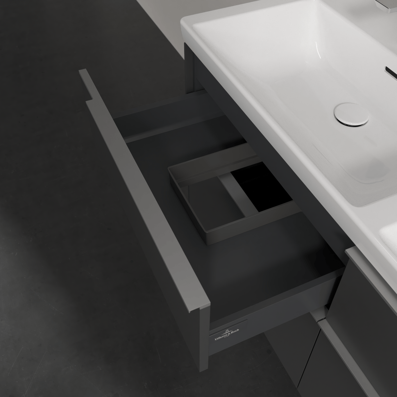 V&b subway 3.0 servantskap 127x57 f/dobbel servant graphite håndtak i krom