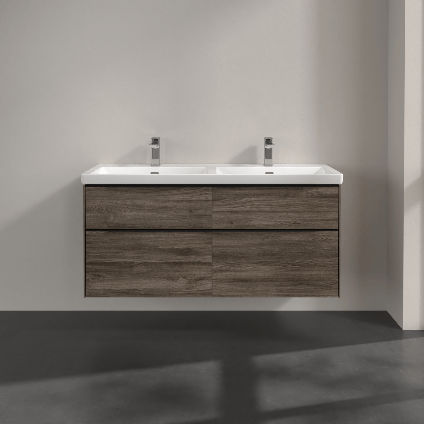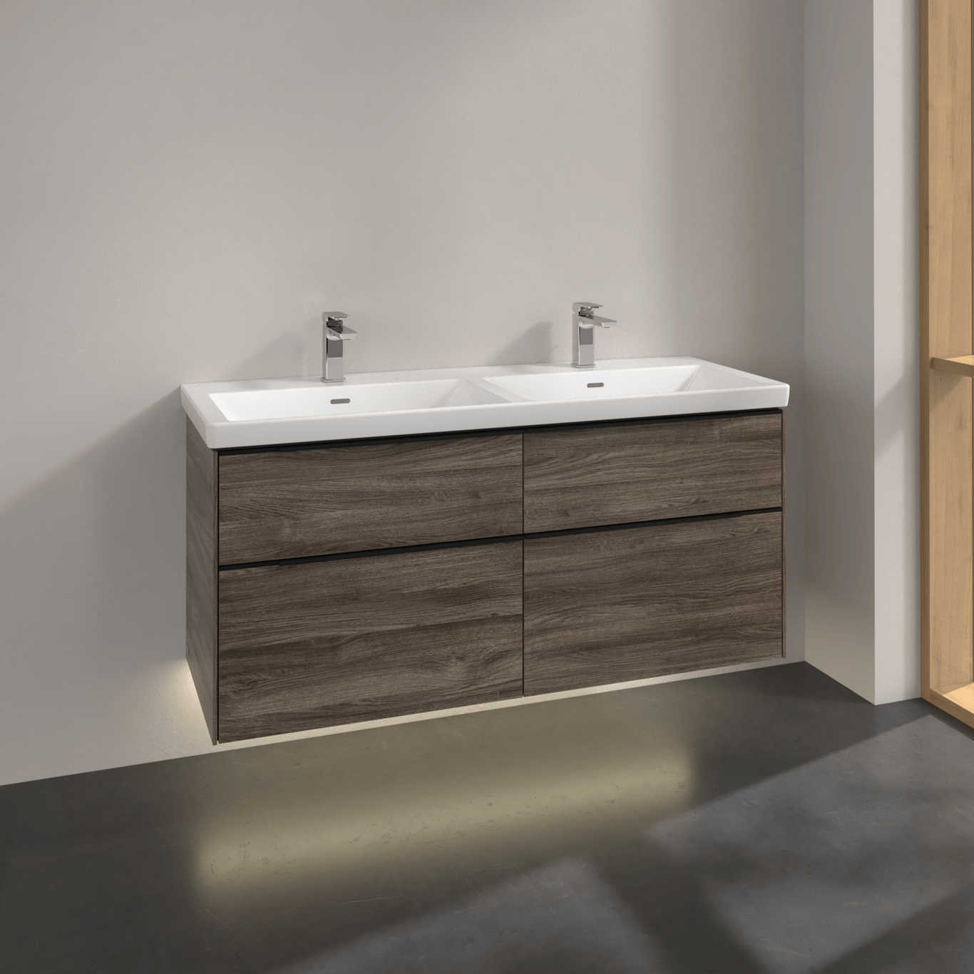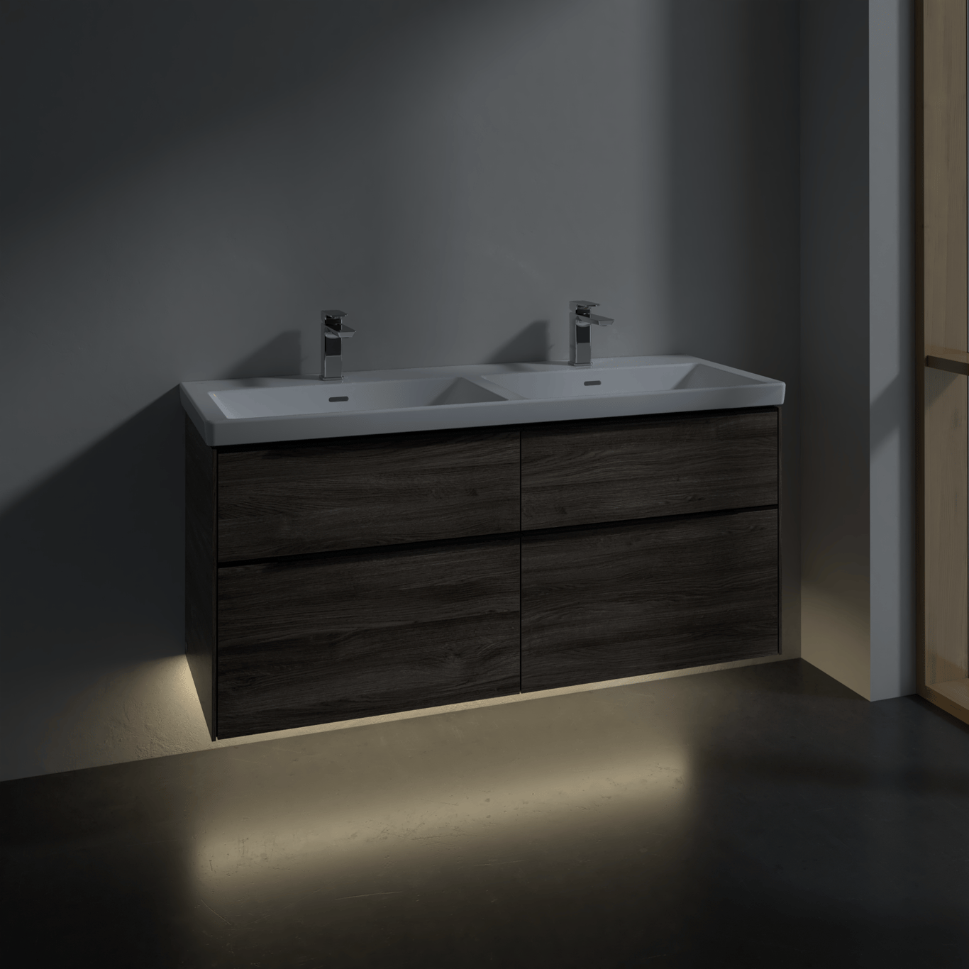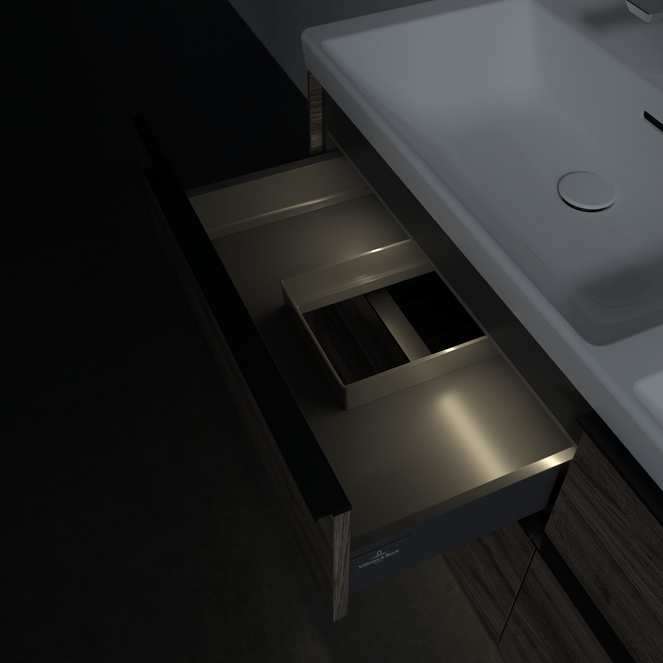 V&B SUBWAY 3.0 SERVANTSKAP 127X57 F/DOBBEL SERVANT STONE OAK M/LYS HÅNDTAK I VOLCANO BLACK