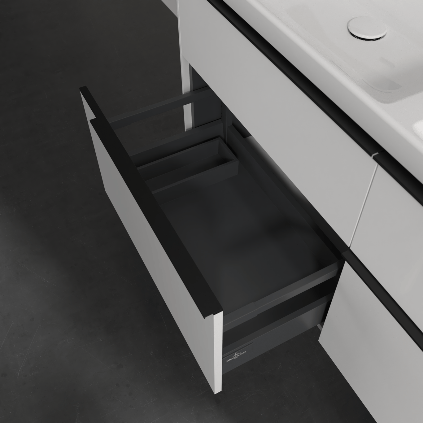 Servantskapet har belyste skuffer med god oppbevaringsplass, og en soft close- og self close-funksjon som sørger for myk lukking, selv når skuffene blir smelt igjen. LED-lyset i skuffen har integrert bevegelsessensor så den automatisk skrur seg på og av når skuffen åpnes og lukkes.
