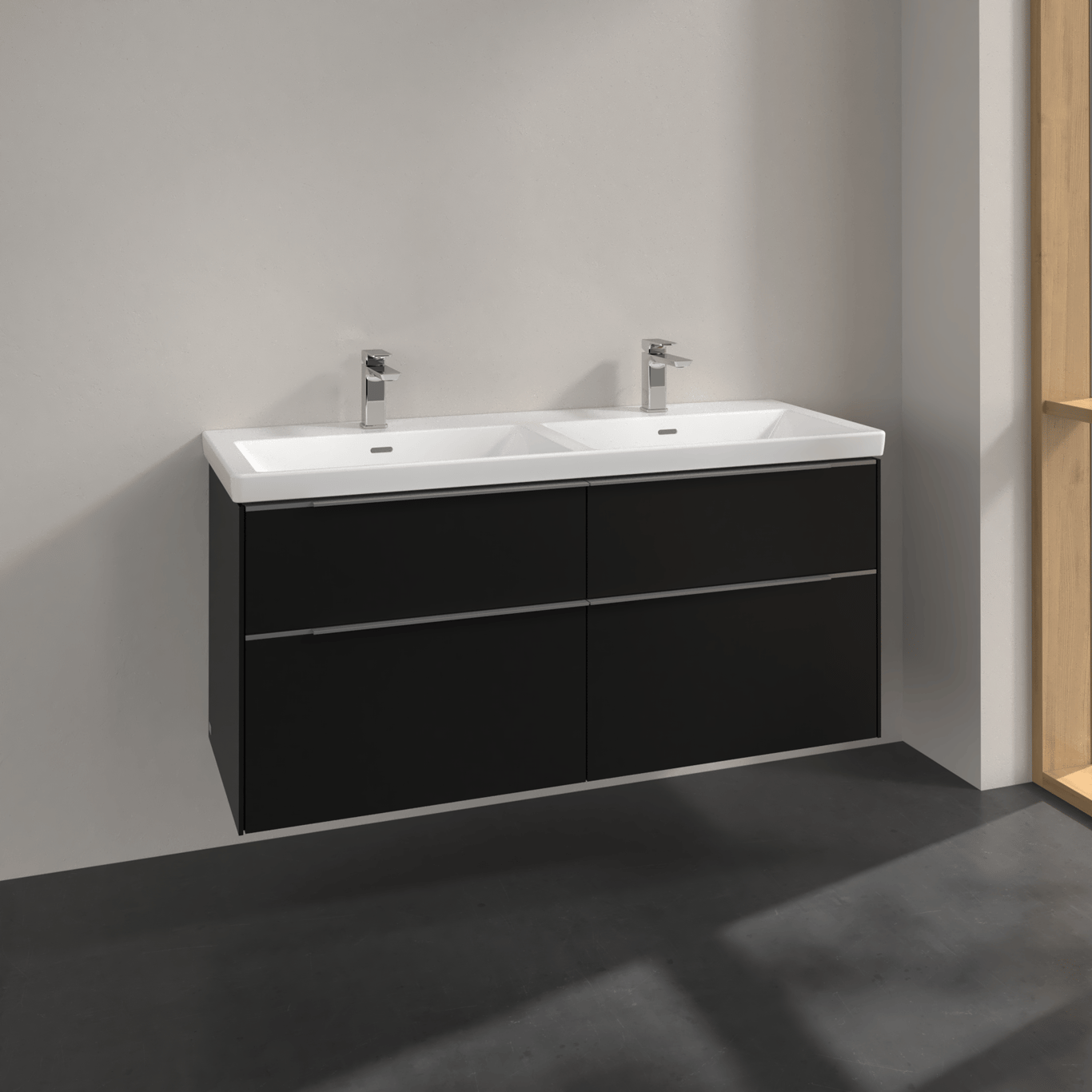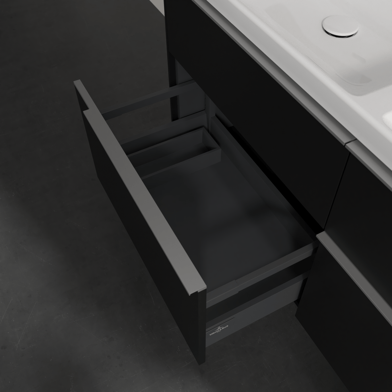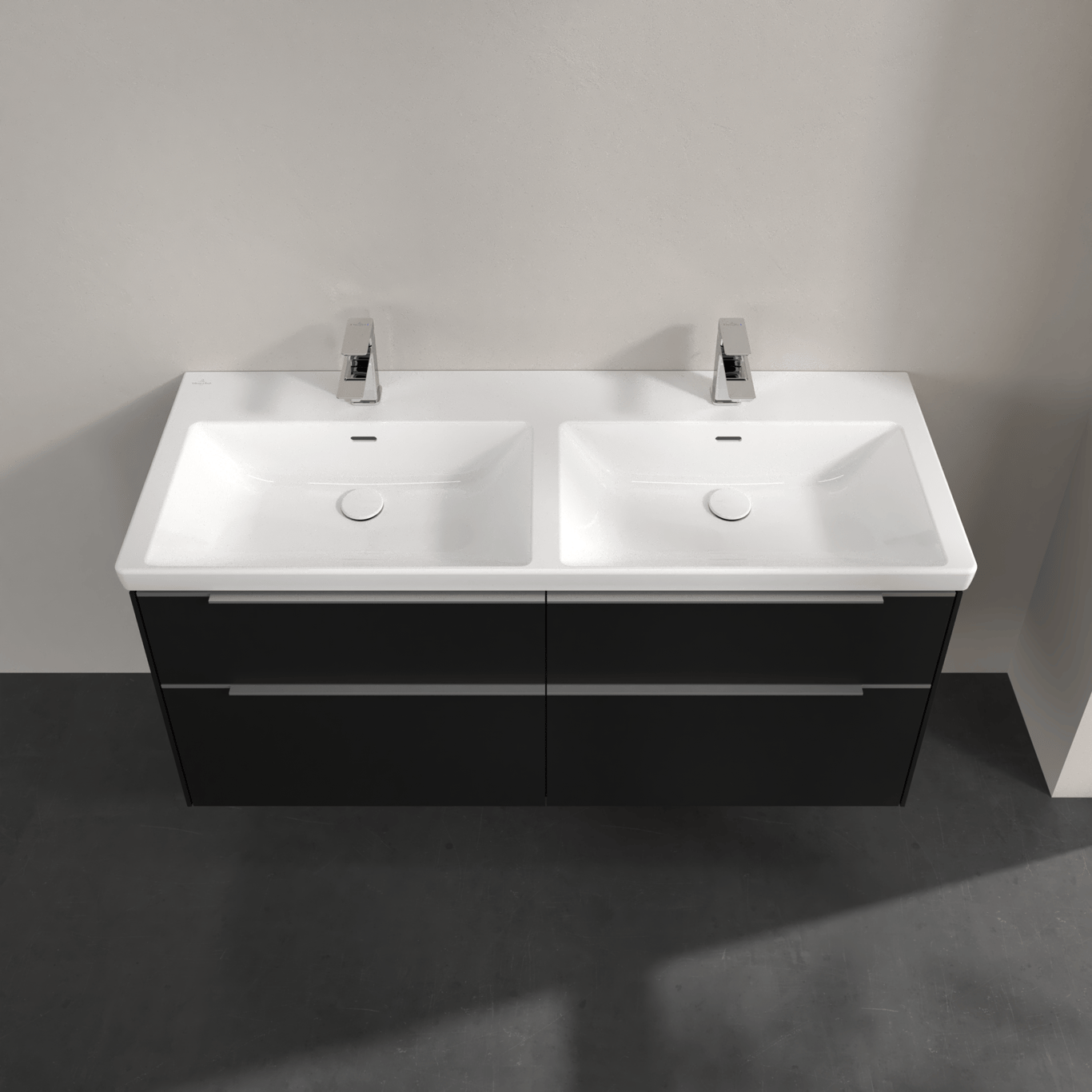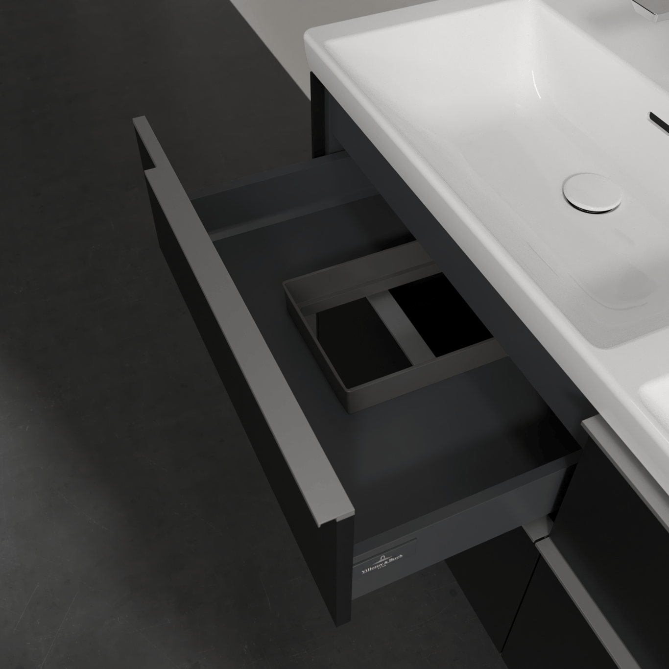 V&b subway 3.0 servantskap 127x57 f/dobbel servant volcano black håndtak i krom