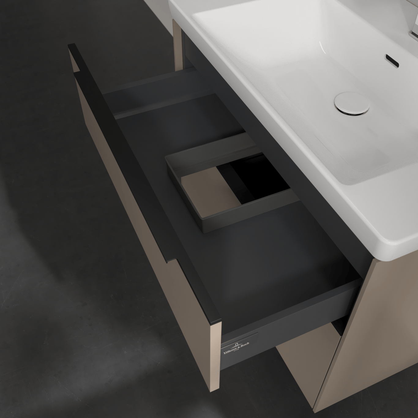 V&B SUBWAY 3.0 SERVANTSKAP 77X57 TAUPE HÅNDTAK I VOLCANO BLACK