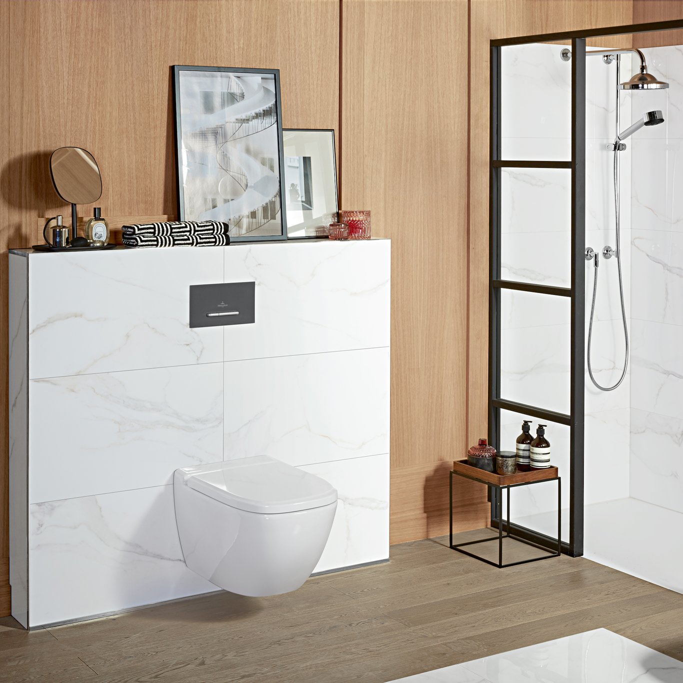 Denne trykkplaten fra Villeroy & Boch har et stilrent design, og kommer med vannbesparende dobbelspyling.