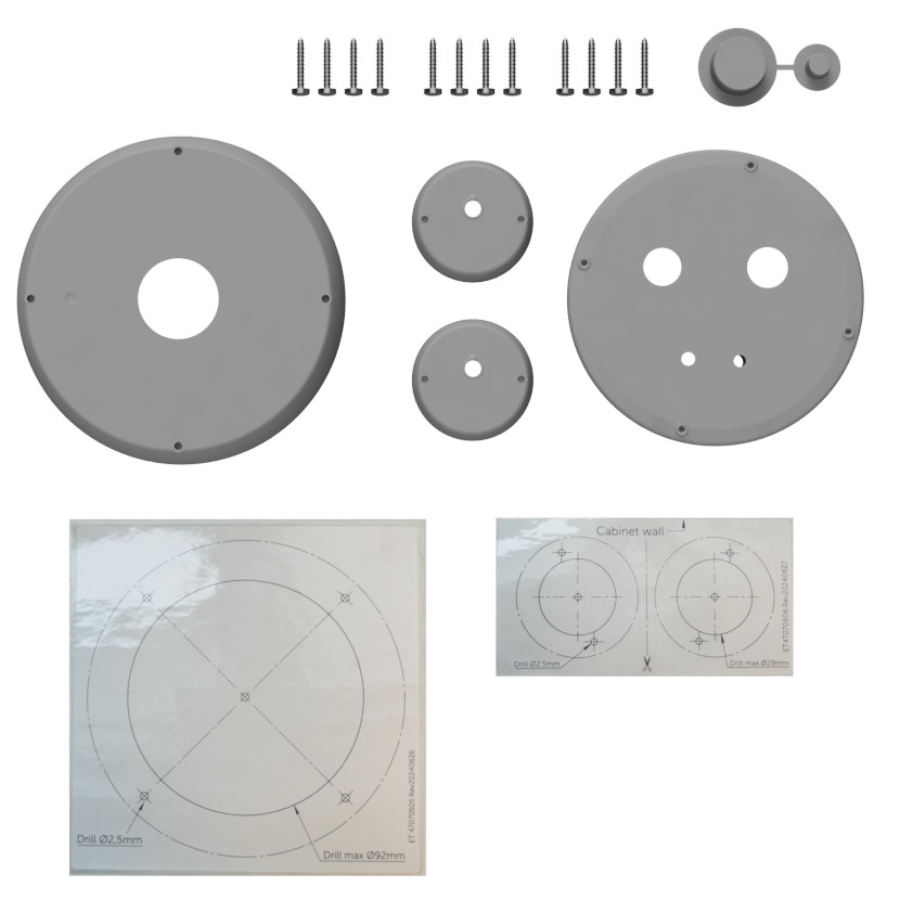 Tetningssett for rør og slanger i benkeskap som gir vanntette gjennomføringer.