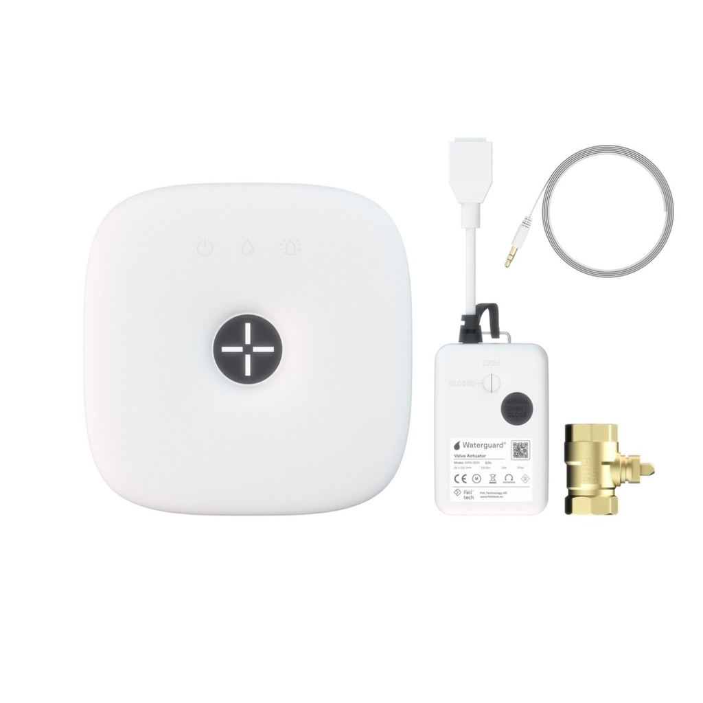 Komplett kit med én drikkevannsgodkjent 3/4" ventil og 3 m sensortape. Oppdager vann og stenger automatisk vanntilførselen for å begrense skade. Egner seg godt på hovedinntak i enebolig, rekkehus og leilighet med egen varmtvannsbereder, eller på kaldtvannstilførsel til vaskemaskin og andre apparater.